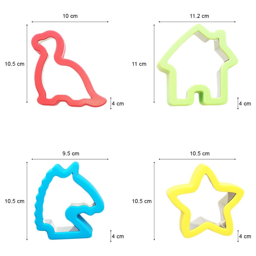 - 4 sandwich cutters: Unicorn, Dinosaur, Star, House