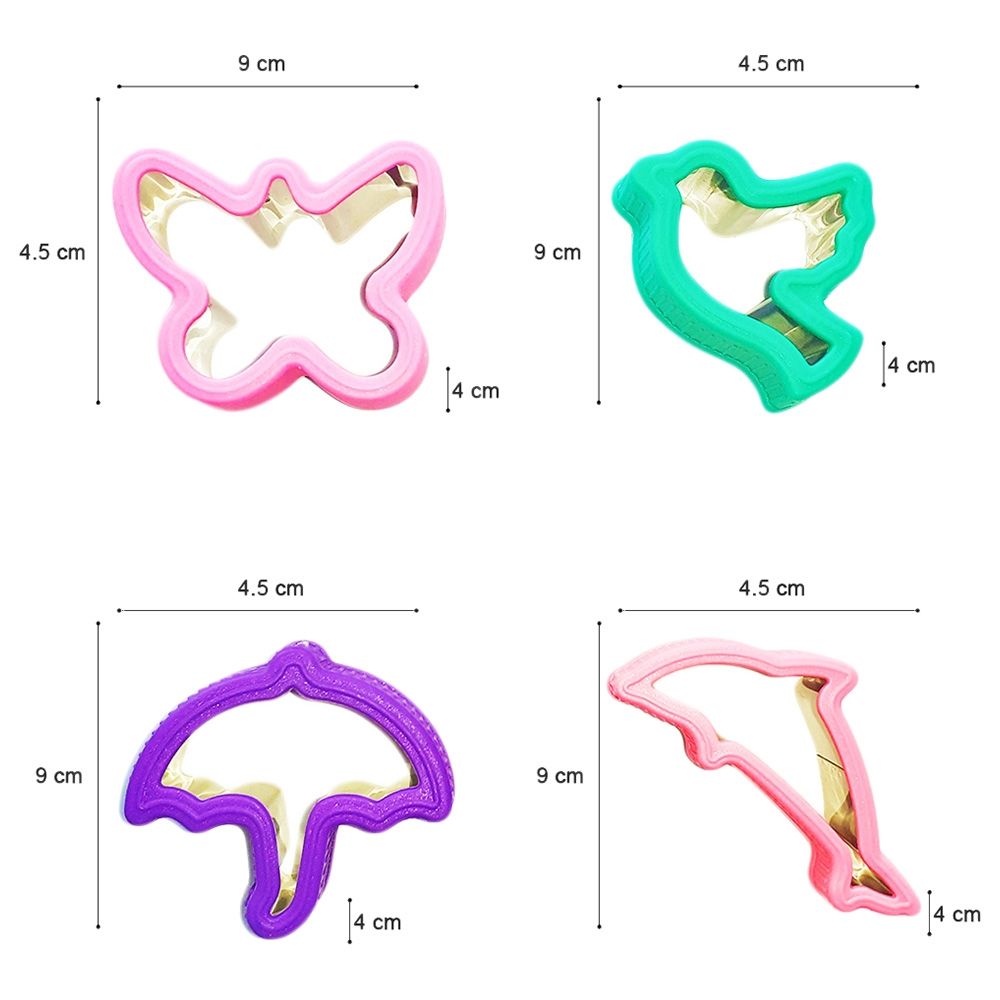 - 4 cookie cutters: Dolphin, Umbrella, Bird, Butterfly