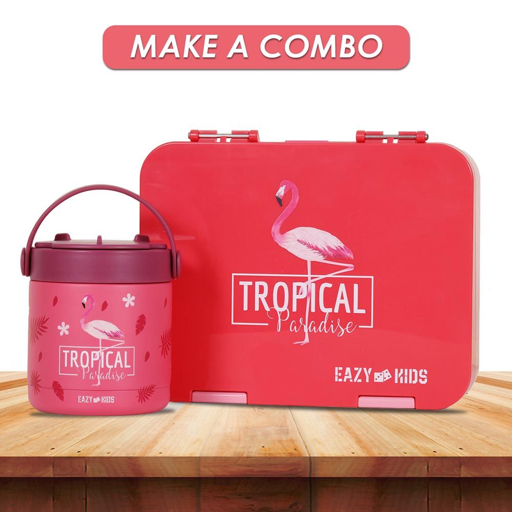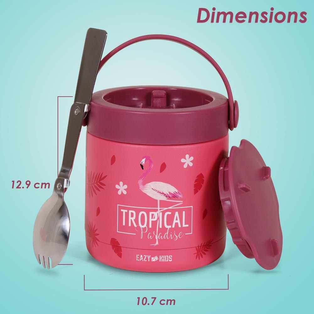 Bring your love of flamingos everywhere with the Eazy Kids Tropical Stainless Steel Insulated Food Jar . Made from BPA- and phthalate-free, food-grade, double-wall insulated 304 stainless steel, this 350ml jar keeps meals warm for 6–8 hours and cold for up to 10 hours.
