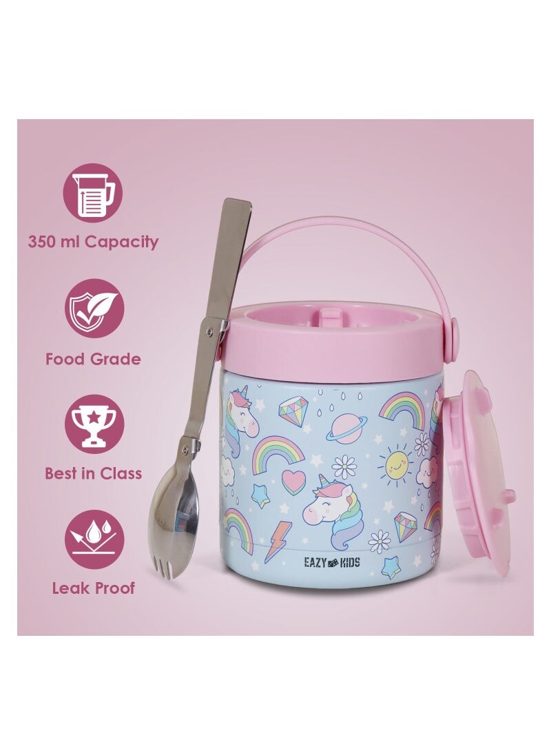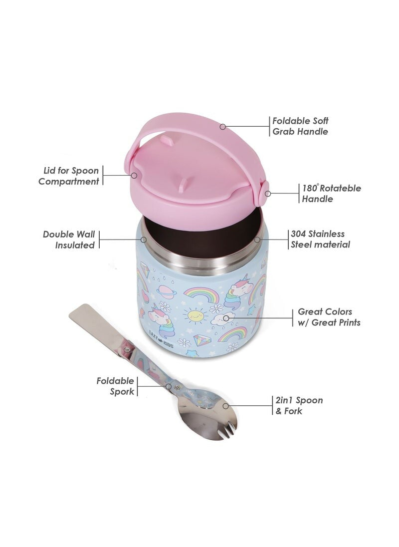 - The Capacity of food jar is 350 ml for a Balanced Nutritious Meals, comes with Folding Spoon fitted inside the Matching Handle Lid & Top Layer is lined with silicon is completely leakproof.