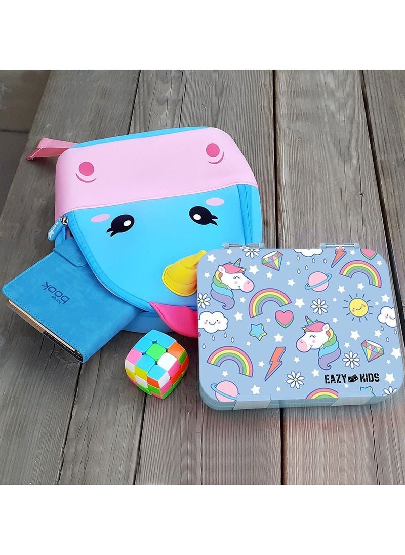 Back to school is back to fun now, because Eazy Kids Back to School combo are especially designed for your kid to make them happy. comes with Eazy Kids Similar color with Similar Prints makes a great Back to School Combo! Bento Boxes redefined! Give your kids a sumptuous meal in New Bento Lunch Boxes by Eazy Kids. This is a revolution for Bento Boxes! Made of Tritana BPA-free material, it doesn't contain BPS (bisphenol S) or any other bisphenols. , , Eazy Kids Bento boxes are unique with a Slant Mouth Opening to provide easy access to the food tray. 4 compartment suitable for sauces and thick yogurts with top layer lined with Silicon seal for each compartment. The top silicon leakproof layer can be removed along with the lower lid which makes it easy to clean. Mirrorable and Dishwasher safe. These extra strong Lunch Box comes in a Cute Unicorn Print and beautiful colors. A set of Sandwich cutters, Vegetable cutters and Fruit Picks comes complimentary with this Lunch box! , , Create fun filled Nutritious Lunches for your kids during this Back to School Season! Bring your love of Unicorn with you everywhere with you with exclusive, gorgeous design, We make Meal time fun! Brighten up your kids day with a sumptuous meal in Eazy Kids Meal Box . Eazy Kids Food Jar is made with BPA and Phthalates Free material non-toxic, food grade & eco-friendly double wall insulated 304 Stainless Steel. The Capacity of Food Jar is 350ml for a Balanced Nutritious Meals, comes with Folding Spoon fitted inside the Matching Handle Lid & Top Layer is lined with silicon is completely leakproof. , , The Food Jar is Freezer safe(-18 C), Dishwasher safe(Without Lid at Top Rack). Eazy Kids Food Jar is lightweight to carry to school. Food Jar has been designed to keep food warm for 6-8 hours and Cold for ~10 hours. Comes great color with great Prints. Team them up with Eazy Kids Matching Water Bottle and have a great Back to School