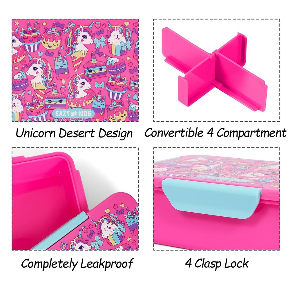 Eazy Kids Unicorn Desert Lunch Box 850ml - Pink