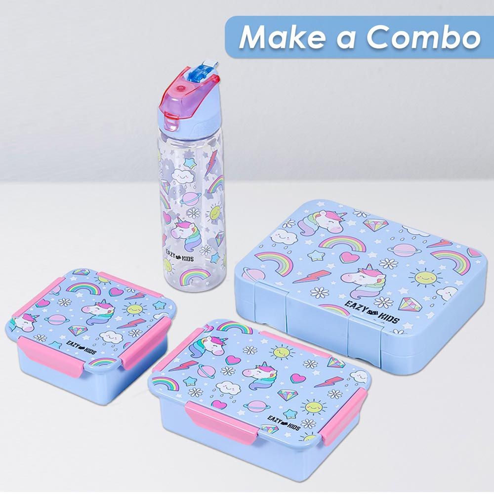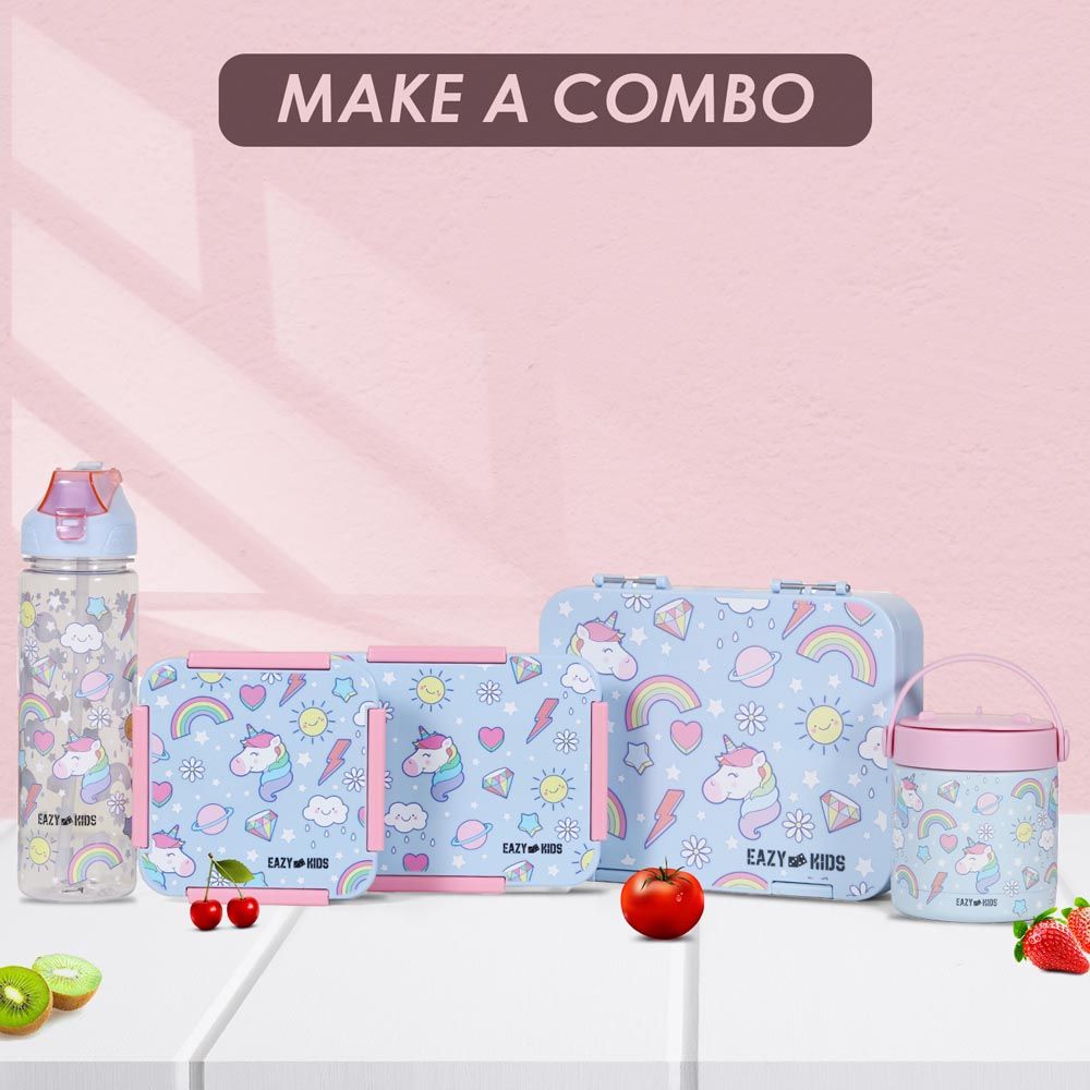 Back to school is back to fun now, because Eazy Kids Back to School combo are especially designed for your kid to make them happy. comes with Eazy Kids Similar color with Similar Prints makes a great Back to School Combo! Bring your love of Unicorn with you everywhere with you with exclusive, gorgeous design, We make Meal time fun! Brighten up your kids day with a sumptuous meal in Eazy Kids Meal Box . Eazy Kids 1/2/3/4 Compartment Convertible Bento Lunch Box is made with BPA and Phthalates Free material non-toxic, food grade & eco-friendly.