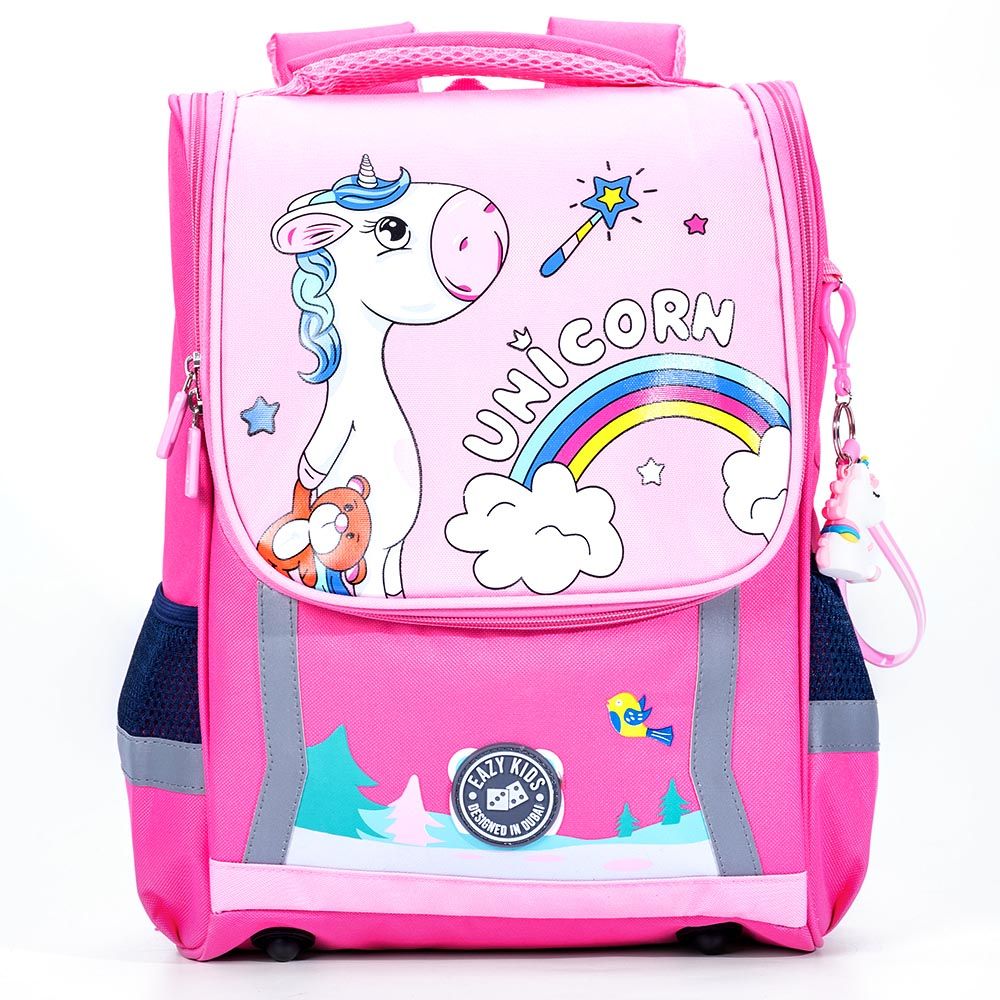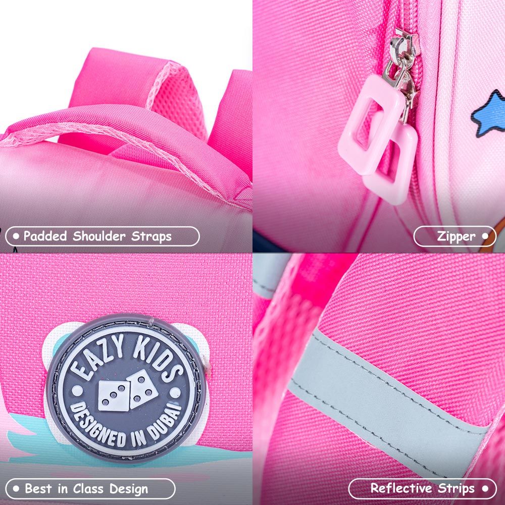 Brighten your child's school routine with the Eazy Kids Unicorn School Bag with Trolley in Princess Pink. Engineered for convenience, this trolley system uses advanced 360-degree 3-wheel technology, ensuring smooth navigation over stairs and surfaces, easing the load up to 50kg. Crafted from lightweight aluminum alloy with a skid-prevention lock, the backpack itself is durable, dirt-proof, and water-resistant. Multiple compartments keep school essentials organized, including twin front pockets and a roomy main zipper section. With sturdy zippers and a safety reflective strip, this bag combines style and safety for every school adventure.