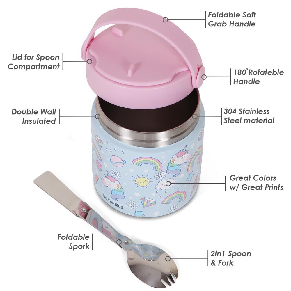 - PACKING INCLUDES: 1 Eazy Kids Unicorn Stainless Steel Insulated Food Jar - Blue(35