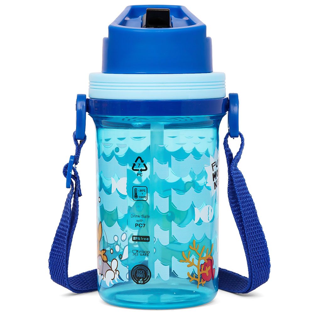 Eazy Kids Water Bottle 500ml With Straw And Strap - Blue