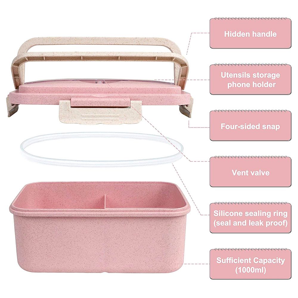 - Eco-friendly bento lunch box with 3 compartments for meal portioning.