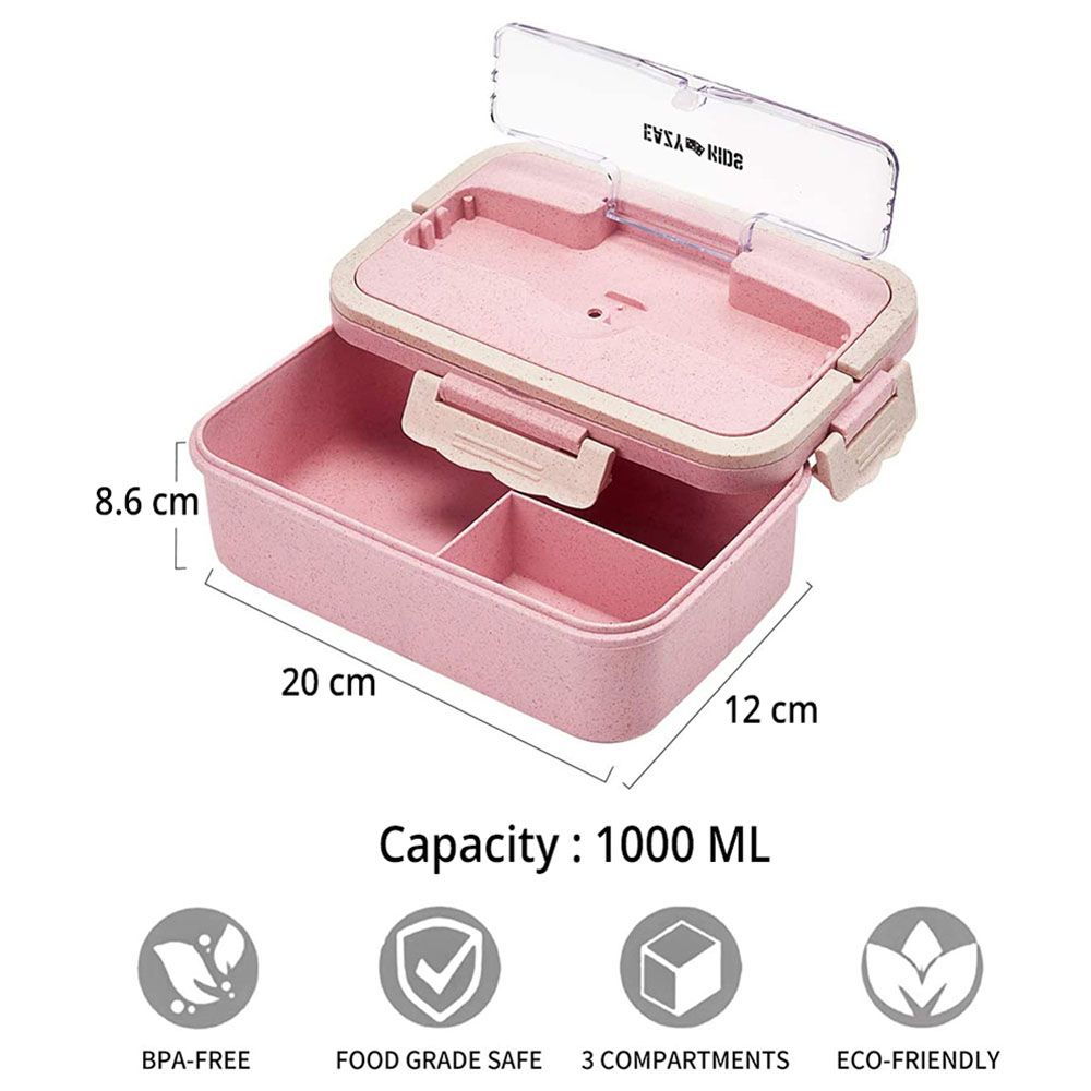 Go green with the Eazy Kids Eco Bento Lunch Box—now with a larger 1500 ml capacity for hearty meals! Made from BPA-free, wheat straw material, it’s safe, durable, and perfect for school or day trips. The 3 compartments help organize meals and snacks, while the silicone-sealed lid prevents leaks. Comes with a handy spoon and fork for on-the-go convenience. Lightweight, dishwasher safe, and ideal for busy days and growing appetites