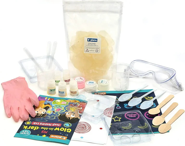 Eksploe Stem Learner My Glow-in-The-Dark Soap Making Lab Learning and Educational DIY Activity Toy Kit safety of materials used in the manufacturing process. My glow-in-the-dark soap-making lab brought to you by explore, explores aims at helping children take another step forward in stem education.