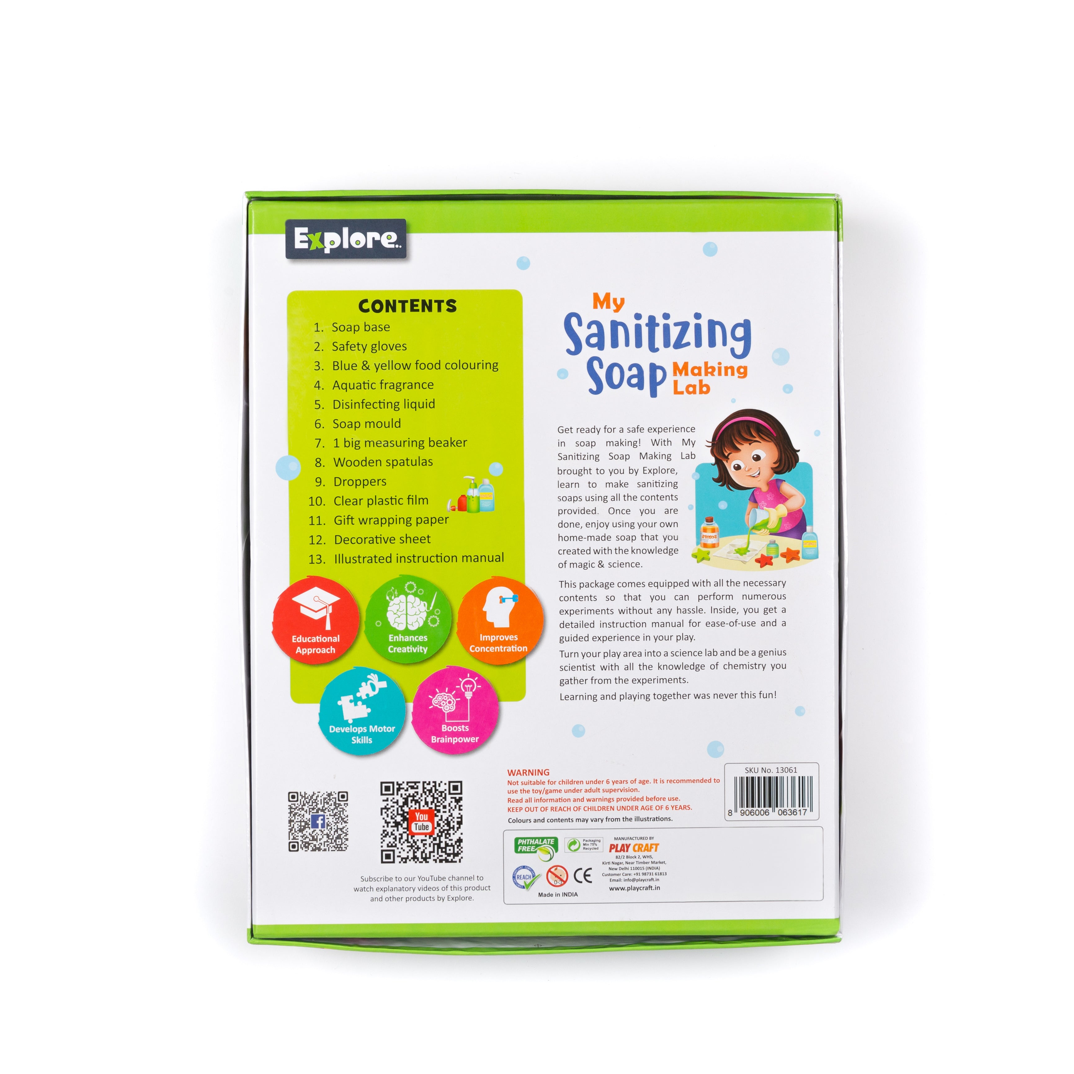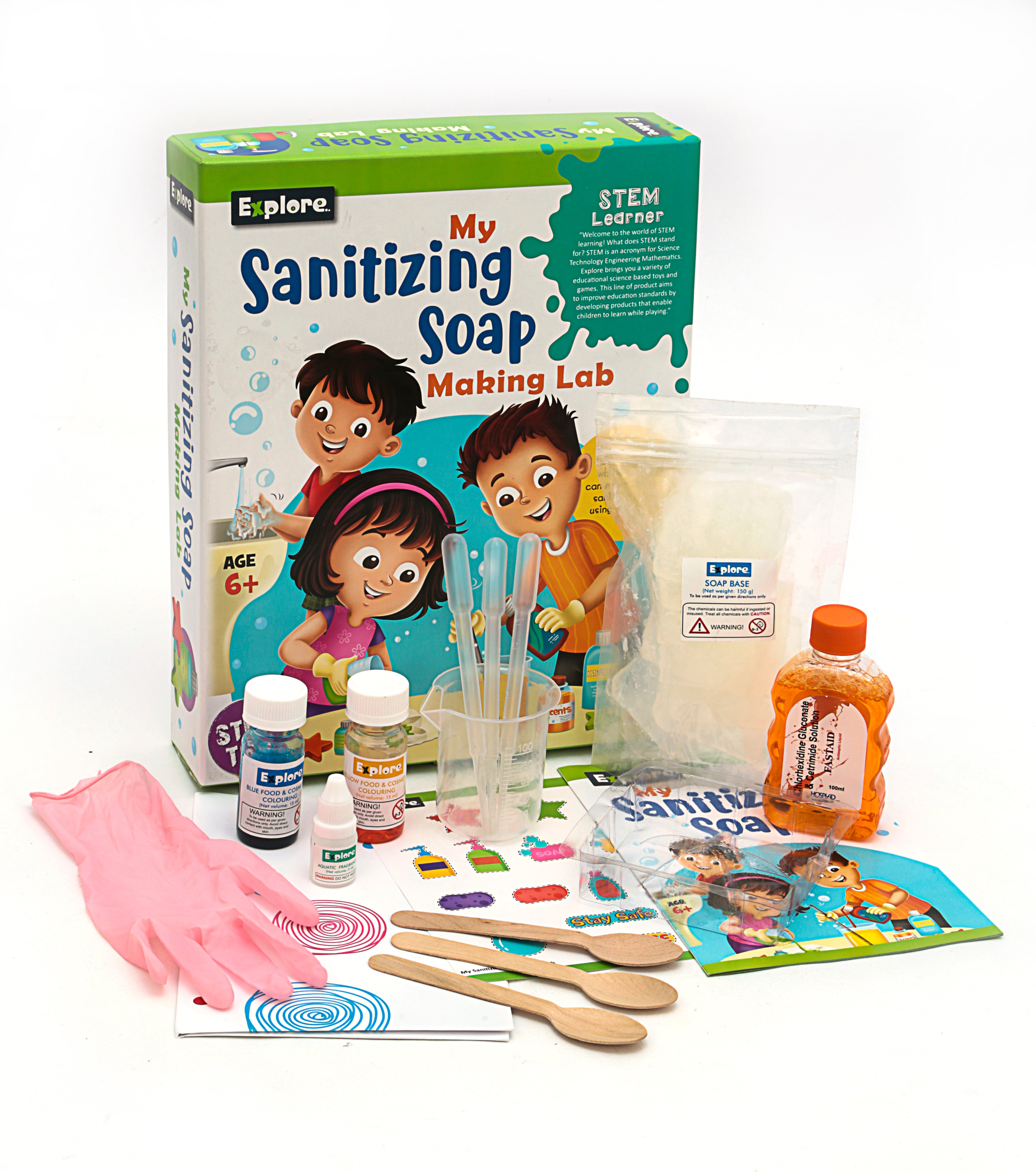 - DEVELOP AN EARLY INTEREST IN SCIENCE: Now your junior scientists can begin to explore experiment and discover their world with our new My Sanitizing Soap making lab by Explore. Don't wait for your kid to get into a chemistry class, when they can have safe science fun in their own home.