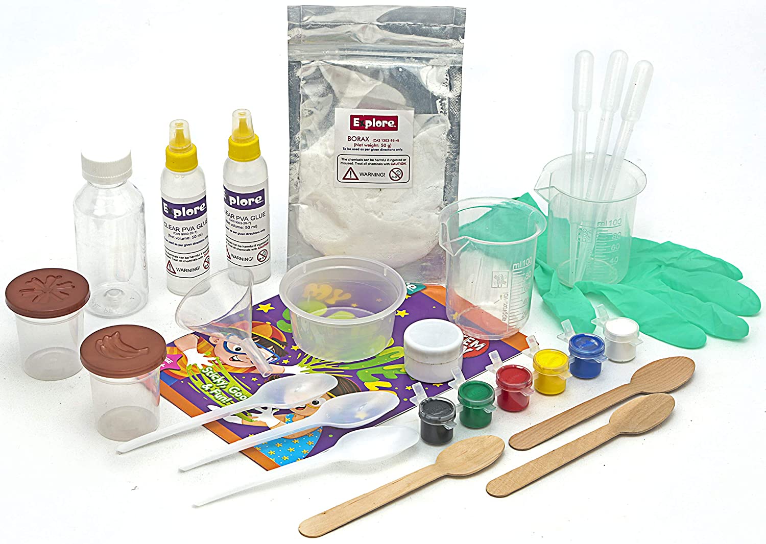 DIY Science Kit. - Make different types of flowing slime, bouncy guar gum ball and even edible slime.