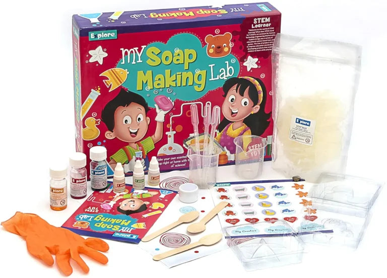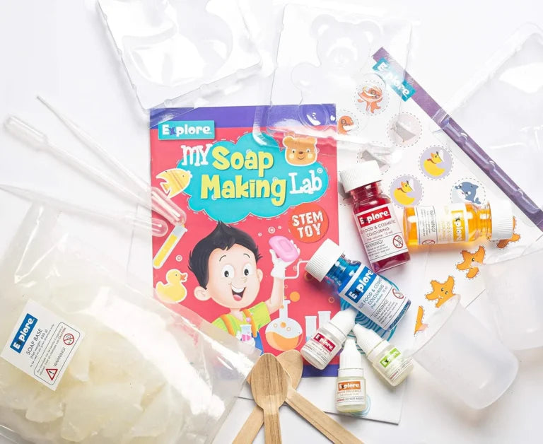Eksploe Stem Learner Mighty Mojo Explore My Aqua Soap Making Lab Education DIY Scientist Set get ready for an aqua experience in soap making. With my aqua soap-making lab brought to you by Explore, learn to make aquatic-themed soaps in different scents.