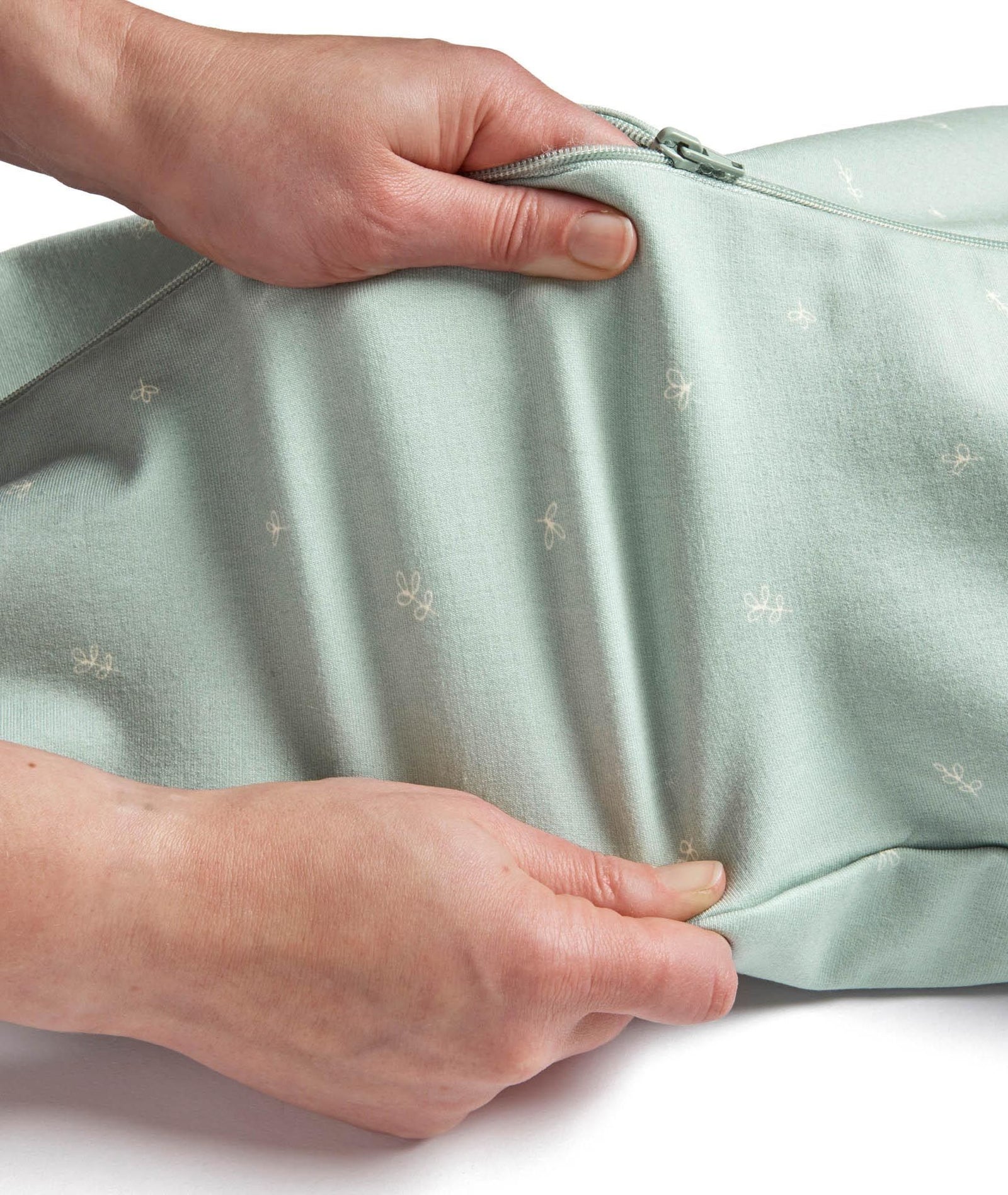 The Cocoon Swaddle Sack is made from natural fibres GOTS certified organic cotton and bamboo with a touch of elastane. This means it's firm enough to restrict startle reflex while still allowing stretch and movement for healthy growth. The stretch also allows for full chest expansion when breathing, added comfort, and for a baby to move its hands into a self-settling position inside the swaddle. The soft, breathable organic cotton and bamboo is certified non-toxic, dyed with water based dyes, and gentle on newborn skin, and skin prone to eczema breakouts. A zip enclosure also protects your child's delicate skin, and the handy arm poppers transition the Cocoon from an arms-in swaddle to arms-out sleep sack when baby is showing signs of rolling. The bell shaped design is approved by the International Hip Dysplasia Institute as being hip-healthy, and promotes proper joint development in the hips and shoulders joints. Finally, the two-way zipper makes for quick and easy diaper changes during sleep with minimal disruptions.