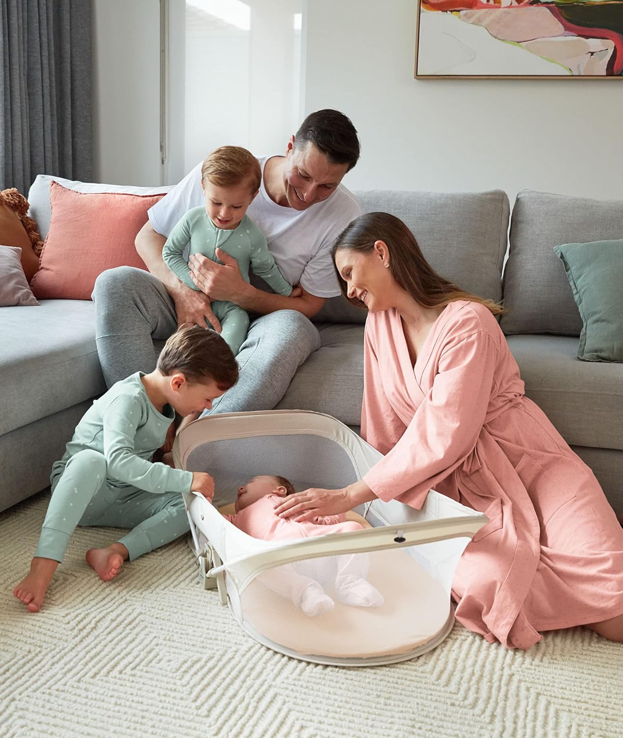 The ergoPouch Portable Bassinet / Ecru with Mattress / Net and Backpack is perfect unique gift for an expecting mother or someone with a newborn. Multi functional and portable. Ideal for co-sleeping/bed sharing. A backpack which can be used as a mummy bag.