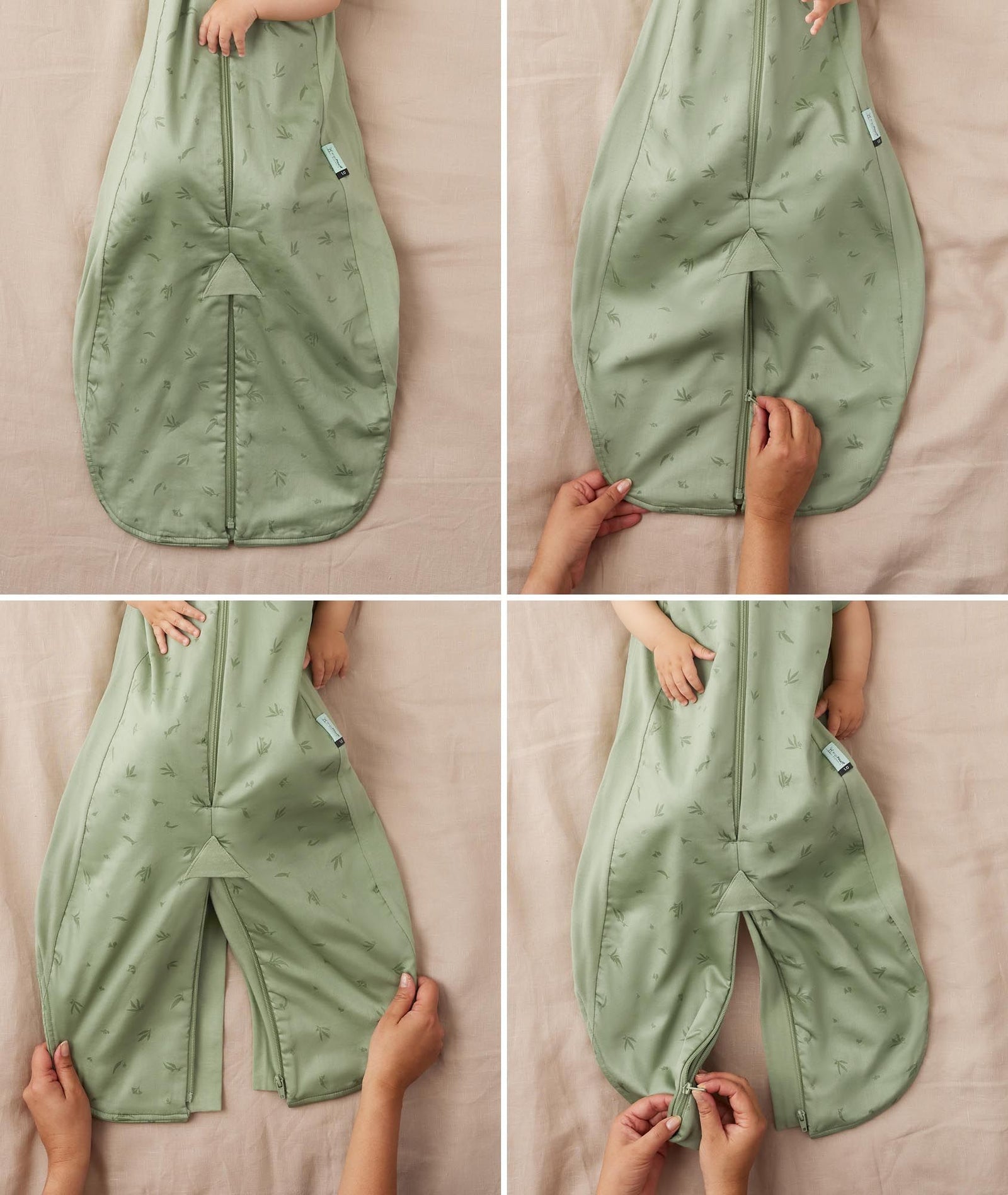 In Sleep Suit mode (with legs), this is the perfect sleep solution for little wrigglers and movers who like more leg freedom in sleep, and toddlers/pre-schoolers transitioning from cot to bed. Whilst in suit mode, the product can also be used with a 5-point harness such as in a pram for day sleeps on walks or a car seat. In Sleep Suit mode, the product provides comfort by not restricting the legs during sleep, and reduces the risk of cot climbing injury. Grip pads on the feet keep your little one stable if walking overnight to the bathroom (or into your room!). The four-way zippers provide ease of use for overnight toilet training. In either Bag or Suit mode, the product is hip-friendly for growing hip joints.
