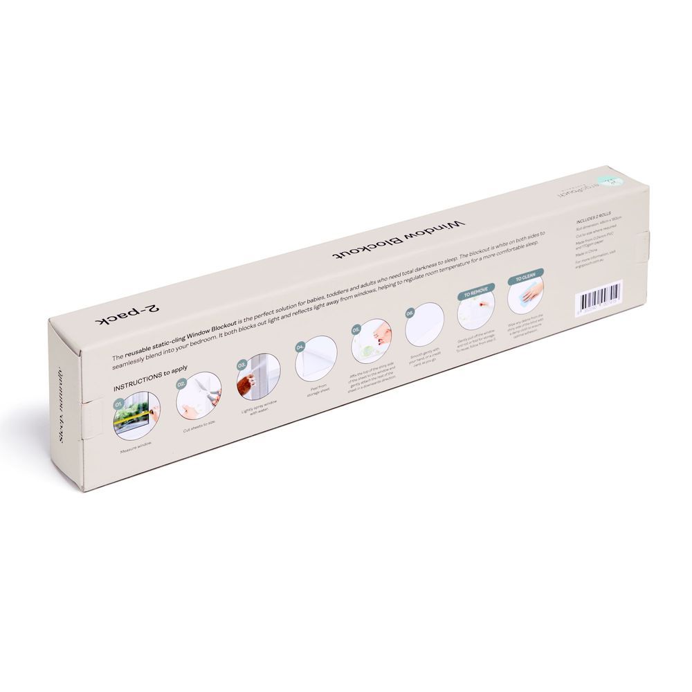 The reusable static-cling Window Blockout is the perfect solution for babies and toddlers who need total darkness in their room to sleep and dream the night away. The static-cling sheets can be cut to size and easily applied to a window and taken off for multiple reuses. Static-cling sheets are non-toxic and leave zero residue. The sheets are white on both sides, to complement any child's room.