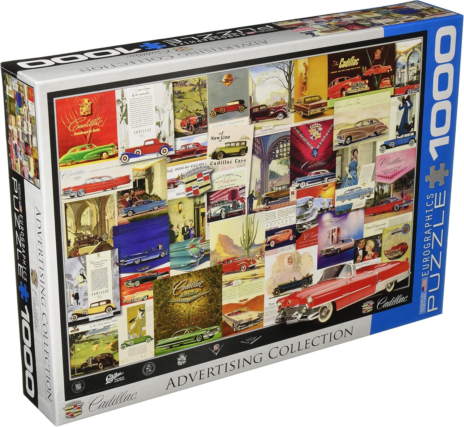 Vintage Car Ads - Cadillac 1000-Piece Puzzle Box size: 10" x 14" x 2.37". Finished Size: 19.25" x 26.5". The Artist's Garden in Giverny is of the most famous paintings by Claude Monet. Strong high-quality puzzle pieces. Made from recycled board and printed with vegetable based ink. This superior quality puzzle will delight and educate all at the same time.