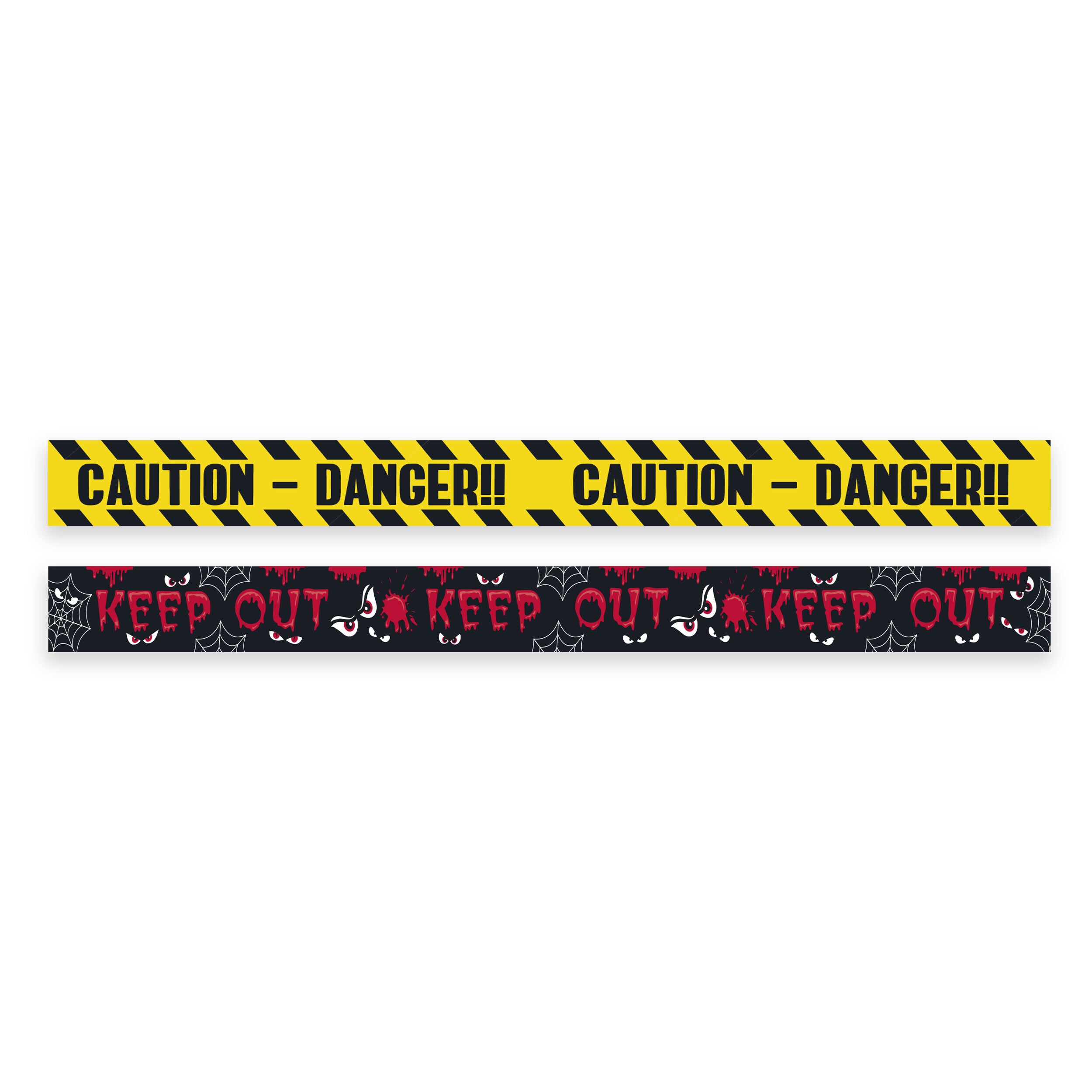 - Halloween Warning Décor – This pack includes 2 assorted 3-metre tapes: "Caution Danger" and "Keep Out" designs, perfect for creating a spooky atmosphere.