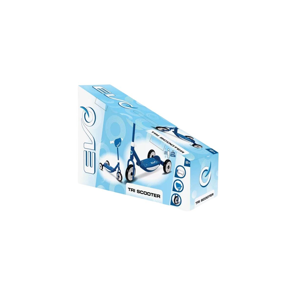 Ride around town in style on the EVO 3 wheel scooter. This kids scooter is the ideal starter scooter having a front 140mm wheel and 2 rear 120mmm wheels to offer additional support and has many features including 608zz bearings, PVC handle grips, 62cm handle height and an anti slip footplate. Maximum weight 20kg. Suitable for ages 2 years and above.