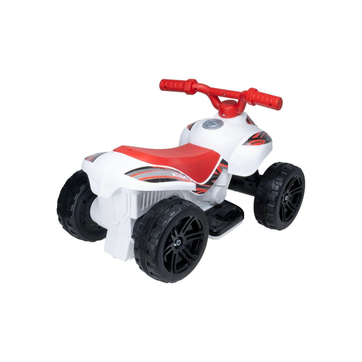 The EVO Racer Mini Quad boasts a sleek and stylish design, featuring vibrant colours and a Red & White Finish that is sure to capture your child's imagination. Its sturdy construction provides excellent stability, allowing your little explorer to navigate various terrains, both indoors and outdoors, with ease. The easy-to-use handle grip throttle controls are designed to be child-friendly, empowering your little driver to steer and manoeuvre confidently with top speeds of 3KMPH. Built with a 6V rechargeable battery and wall charger to keep your rider powering forward. Suitable for riders aged 2+ and up to 25kg.