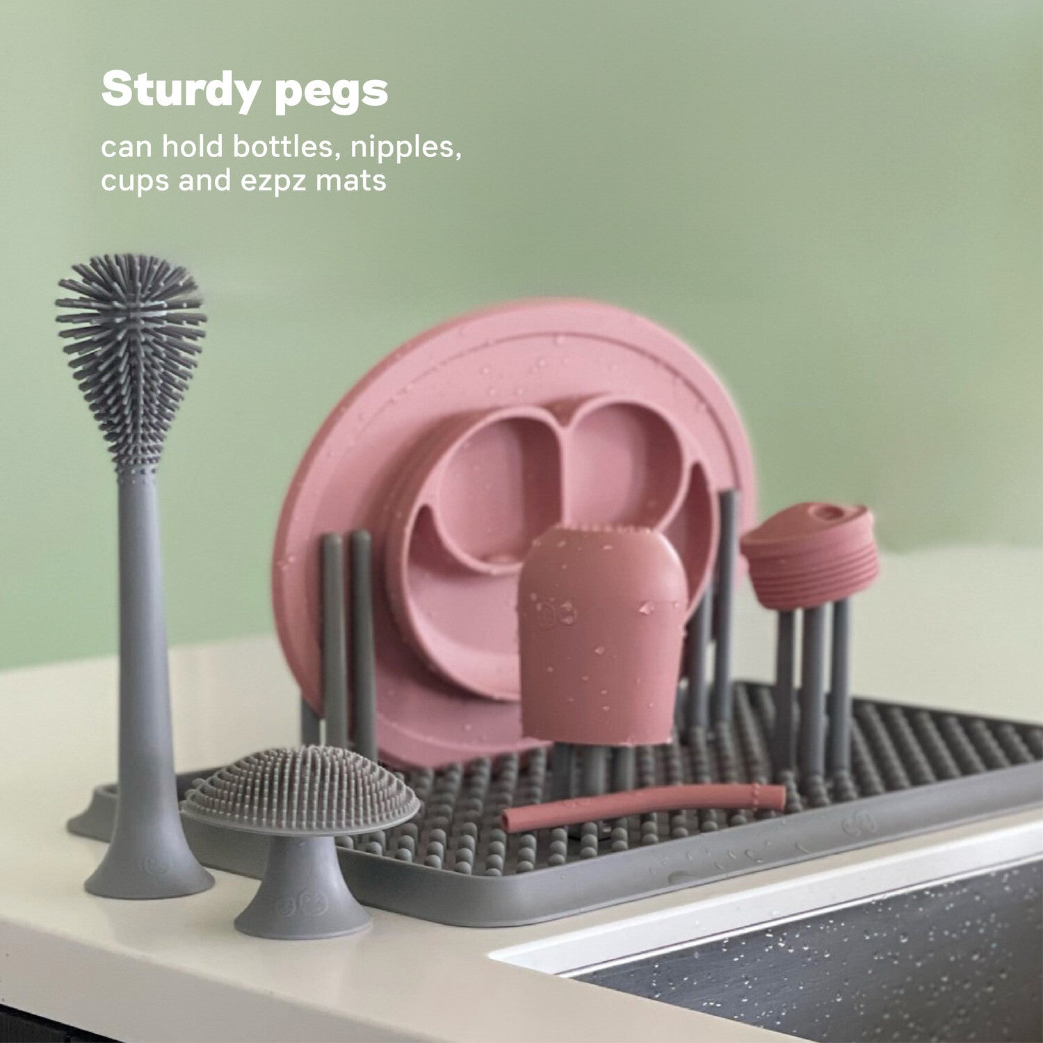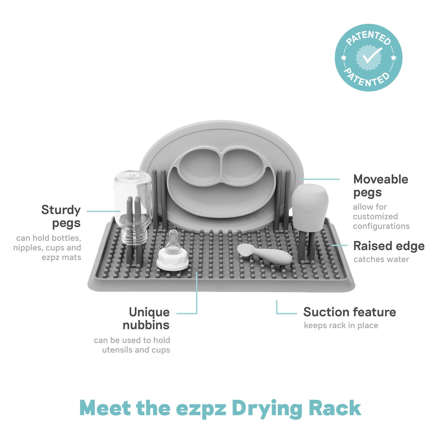 - Sturdy pegs can hold bottles, nipples, cups and ezpz mats