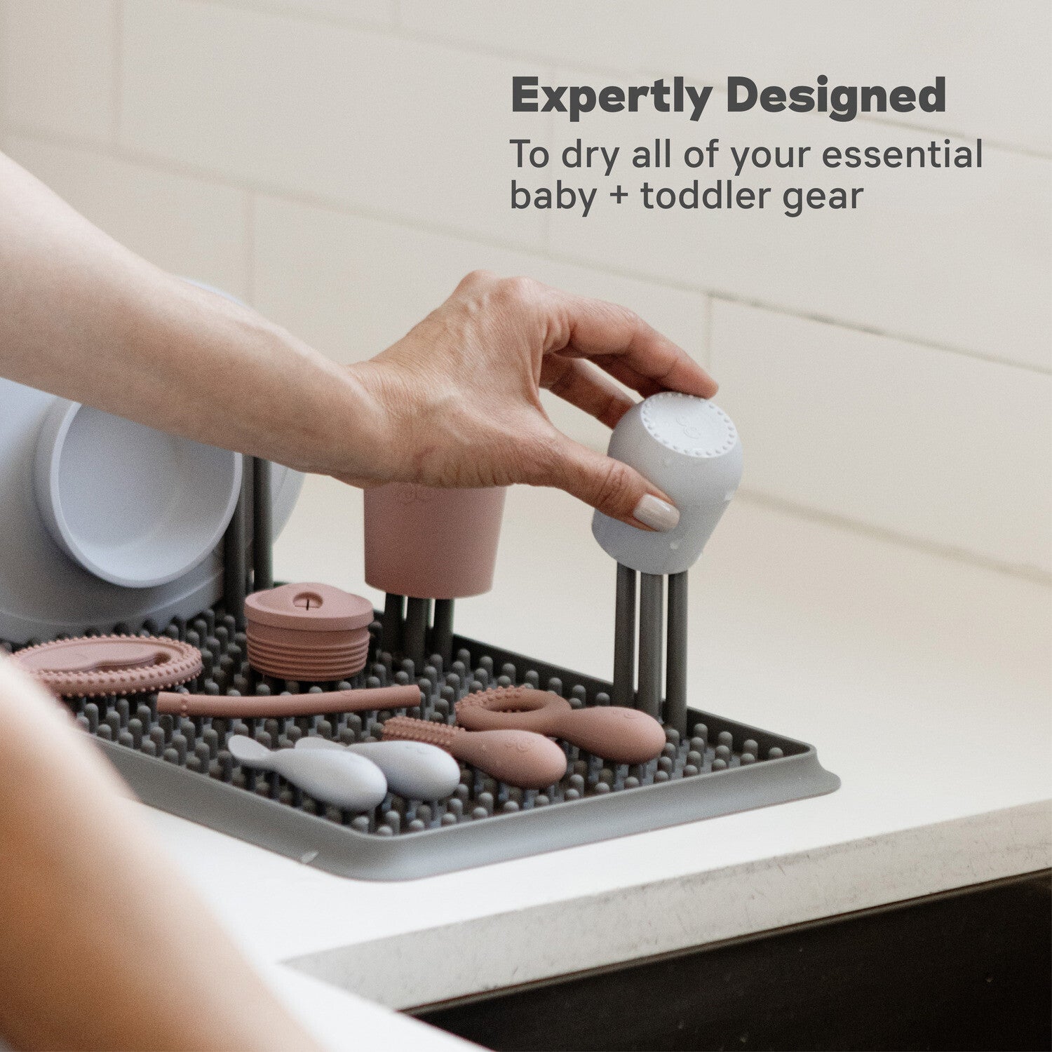 The ezpz Drying Rack was designed to help dry + store all of your essential baby / toddler gear – including ezpz products! The removable pegs make the rack customizable to suit your drying needs. Plus, modern-day parents can proudly display the chic design on their counter.