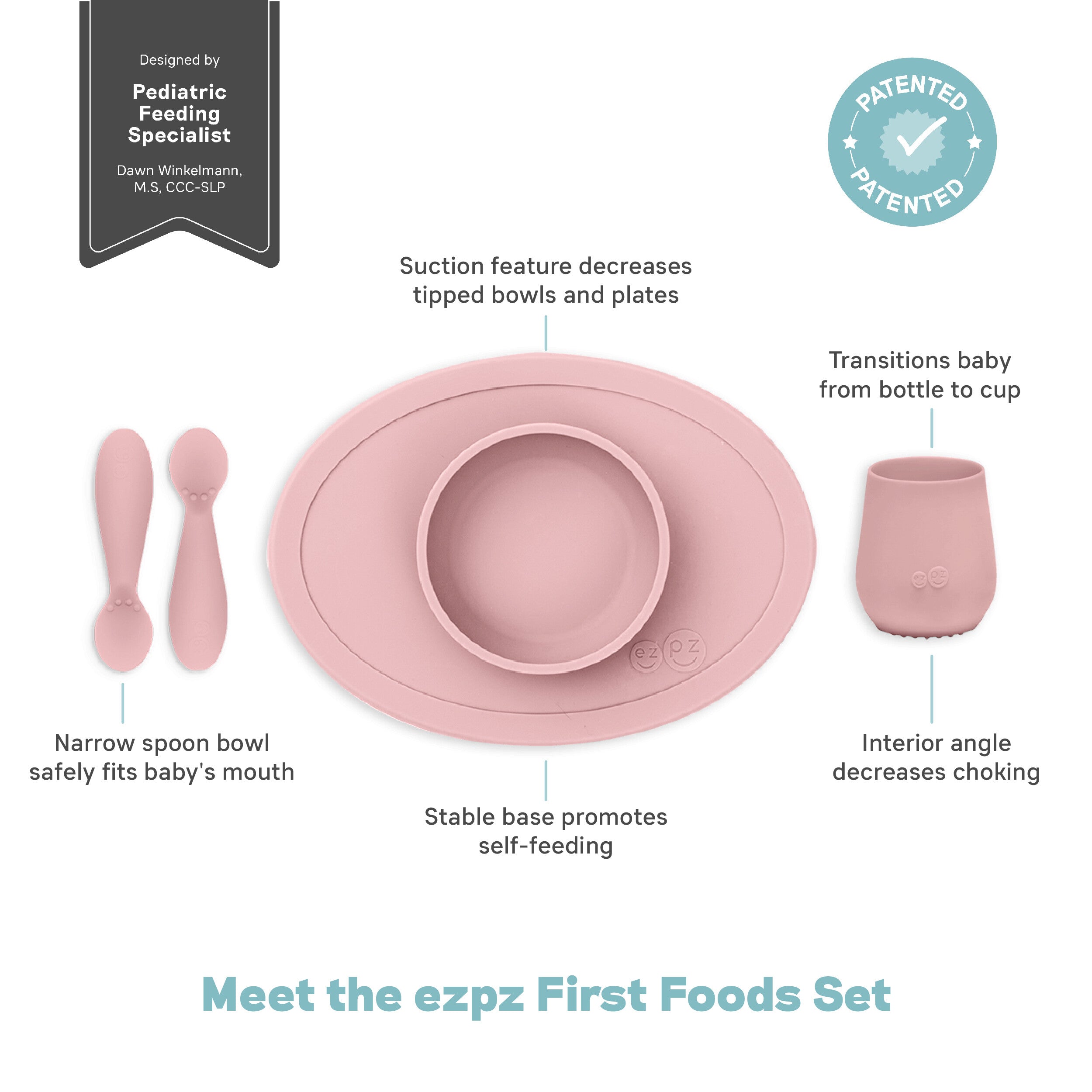 Most parents introduce first foods to their baby at 4 to 6 months of age. This experience can be fun, but it also can be messy, stressful and overwhelming. With the First Foods Set ezpz provides all of the developmental tools you need to set baby up for mealtime milestones – plus calm and confident parents!