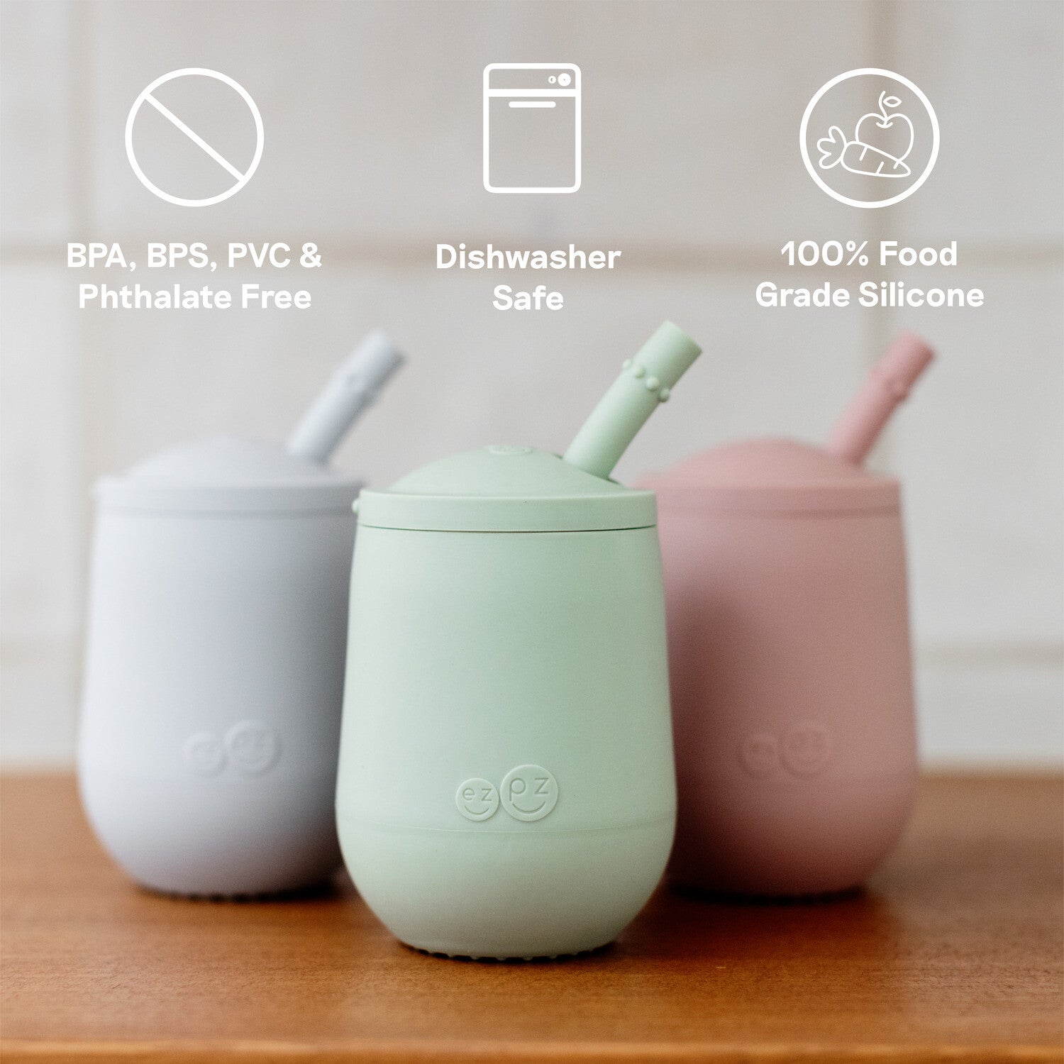 Learning to drink from a straw is an important developmental milestone that develops lip rounding and promotes speech development. The ezpz Mini Cup + Straw Training System teaches toddlers to drink from an open cup and safely learn to use a straw.