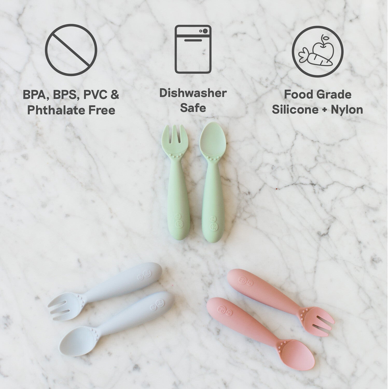 ezpz Mini Utensils (Spoon + Fork) - Pewter