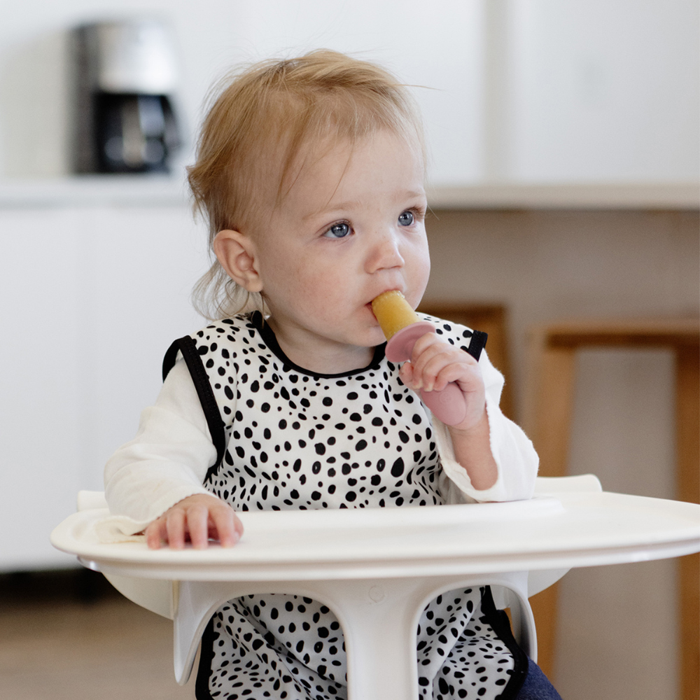 Finally, a popsicle mold made for infants! ezpz Tiny Pops are portion-sized at ½ oz and have a short, fat, round handle for baby’s grasp. To use, simply freeze breast milk, formula or a smoothie for 4+ hours and (voila!) your baby has nourishment and a treat for their senses!