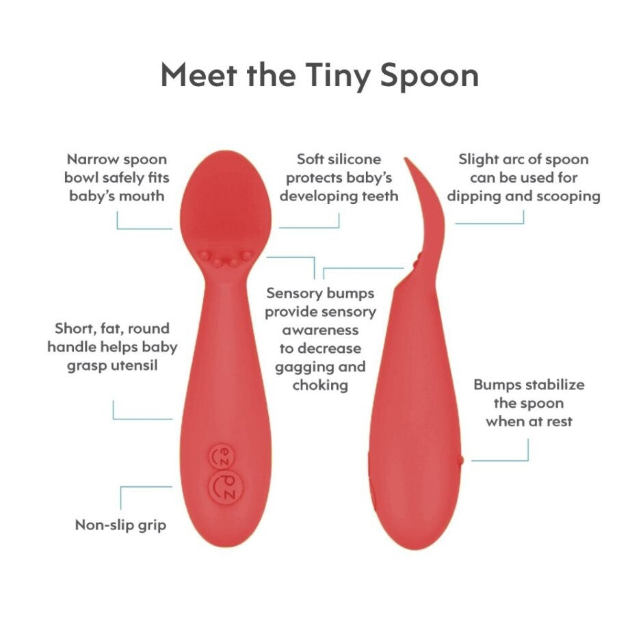 Learning to self-feed is an important developmental milestone, and the ezpz Tiny Spoon is designed to help baby learn how to feed independently. The Tiny Spoon has unique features that make it the most functional, developmentally appropriate infant spoon on the market.