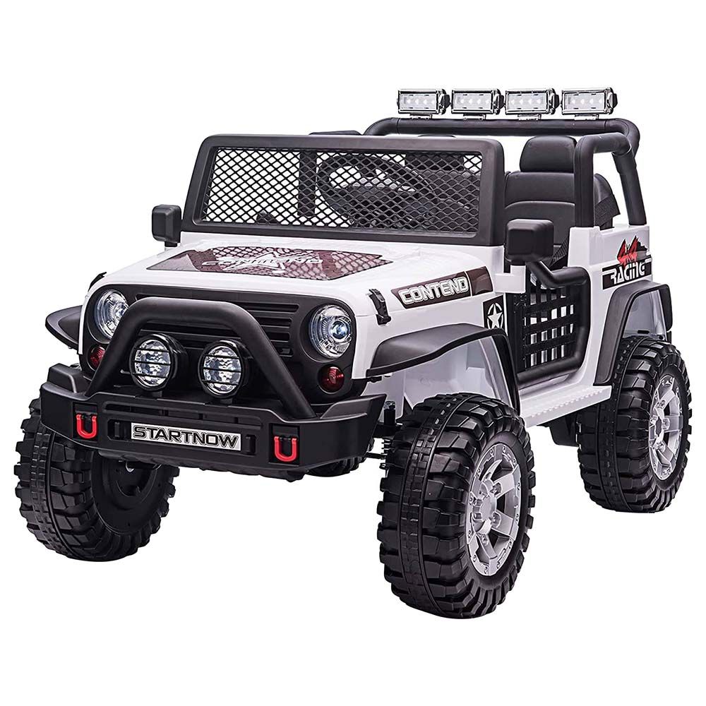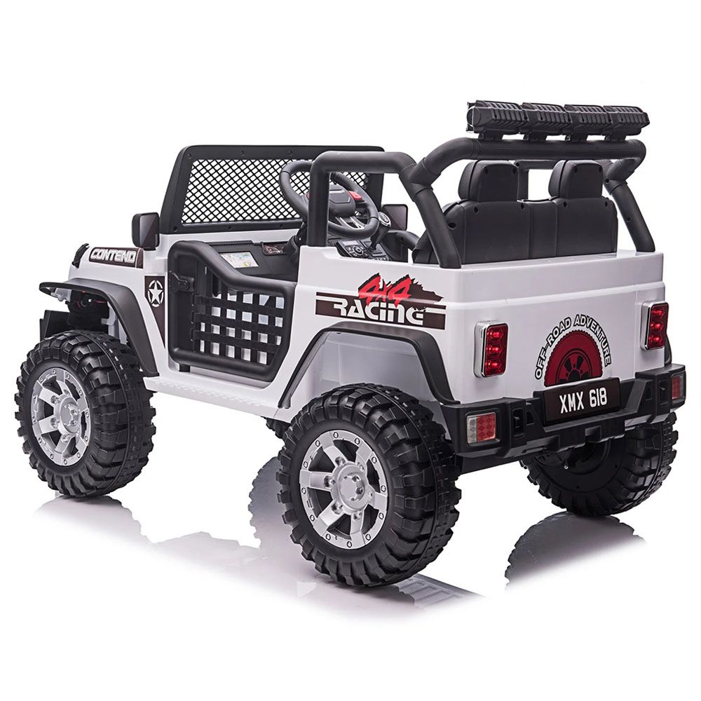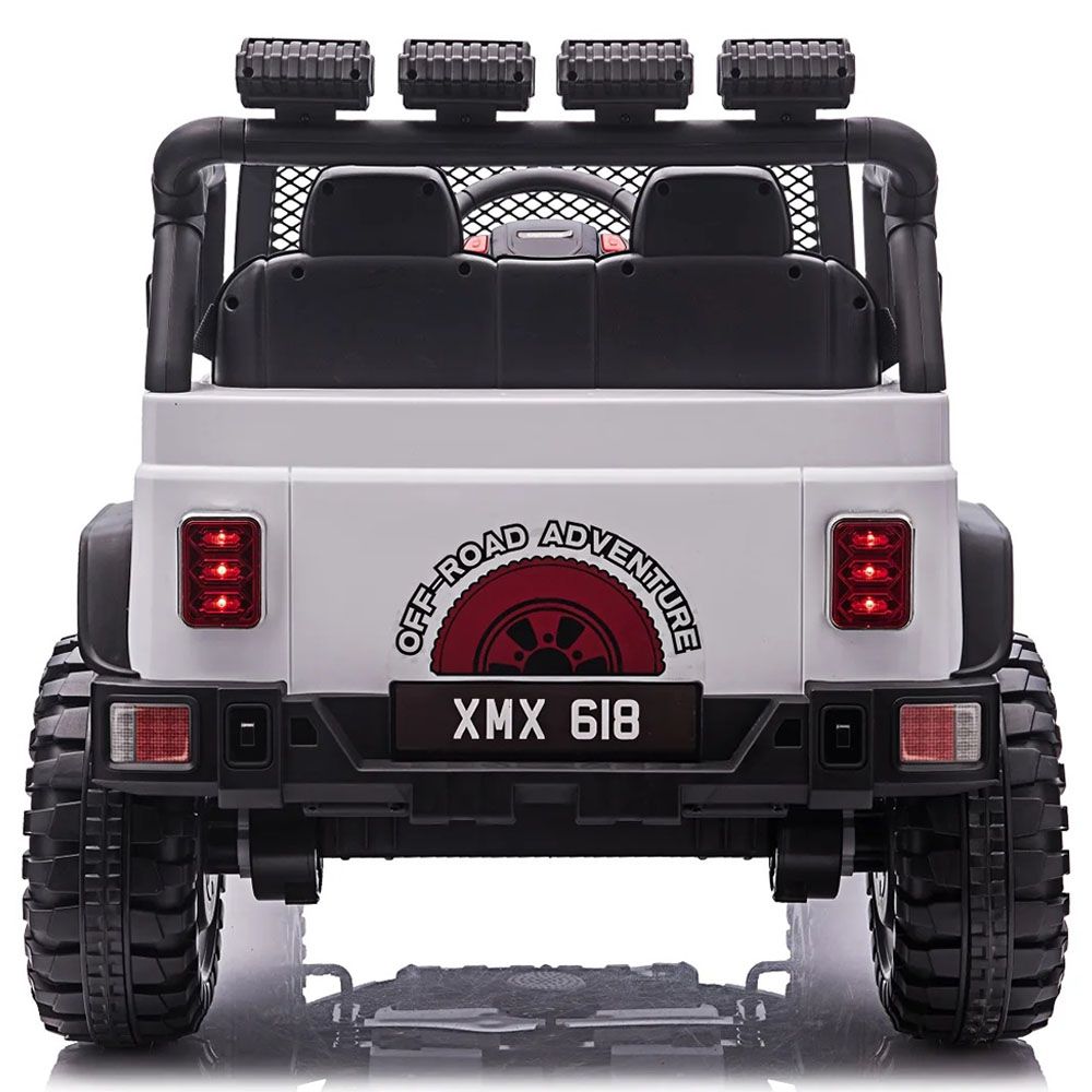 12 Volt Ride-on Kids Electric Toy Car - Front and rear light, music, 2.4G remote control with soft start, double doors can open, with USB, SD card socket, MP3 port, FM, which can connect with cellphone, power display, volume adjustment, seat belt, four wheels spring suspension, double seats.