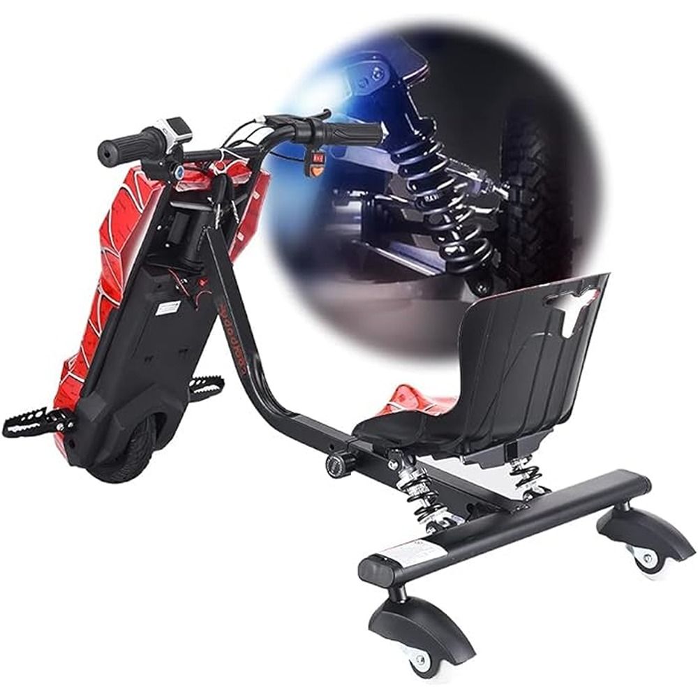 - ELECTRIC THREE-WHEEL DRIFT CAR HEADLIGHT DESIGN: The headlights are added in front of the drift car, which makes it more cool at night. The drifting scooter is of high quality and has a stable steel frame. This drift car has a strong grip and drifts mor