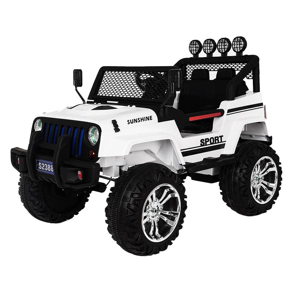 This model is fitted with a double seat, suitable for two younger children, or one older child. Two speed settings: Either drive with more torque and a lower speed, or higher speed on flat surfaces! Optional parental remote control is included: The car can be used with the in-car controls, using the pedal, forwards/reverse switch and steering wheel, or can optionally be used remotely with the parental control. The parental radio remote can operate from up to around 20m away and controls forwards/reverse and moves the steering wheel left and right. Seat belt: The car has a seat belt fitted, to keep your child safe if using the parental remote option.