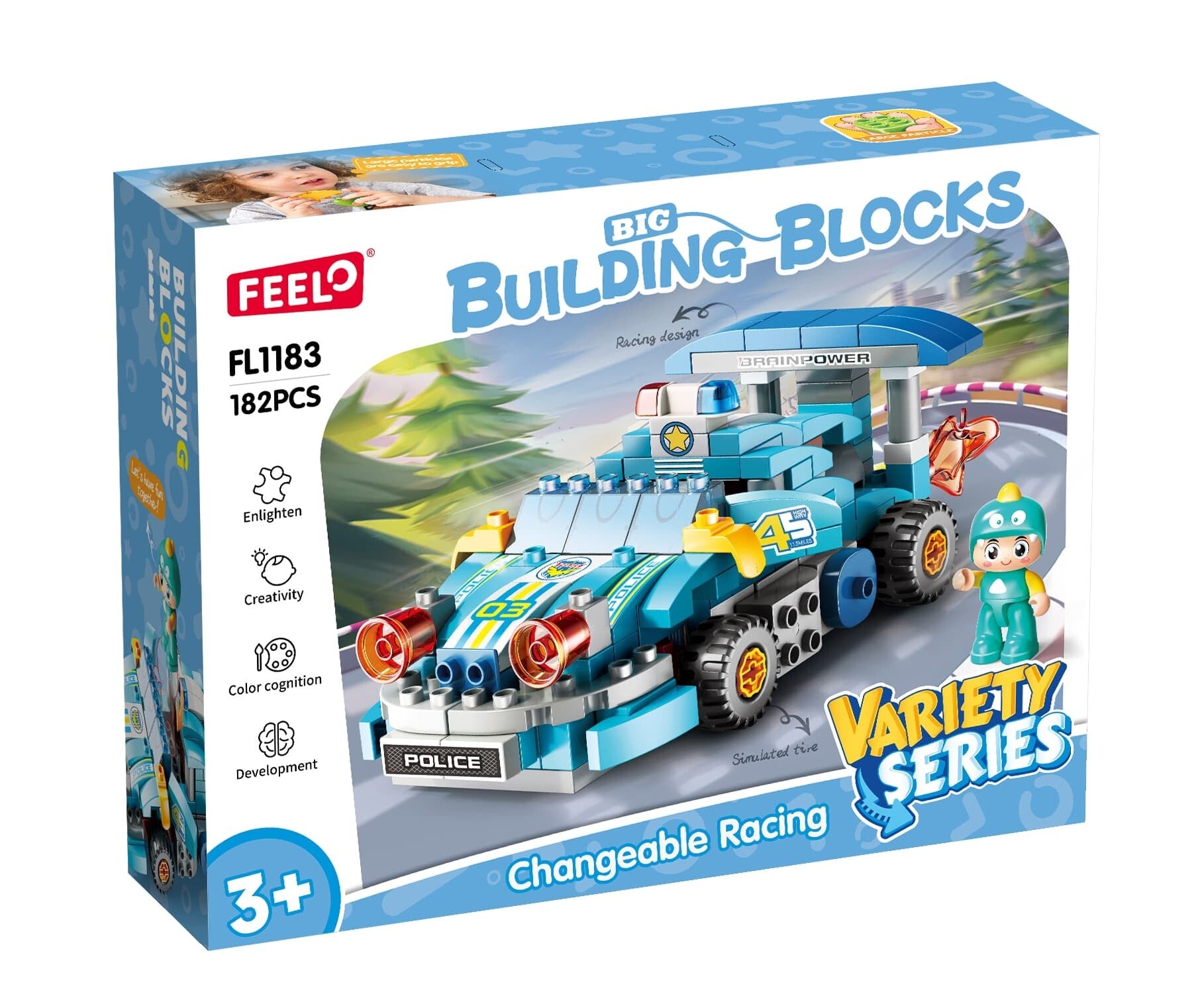 - 182-Piece 2-in-1 Set (FL1183): Build a large Police Racing Car that can be disassembled and rebuilt into an exciting Transformable Mecha Robot figure.