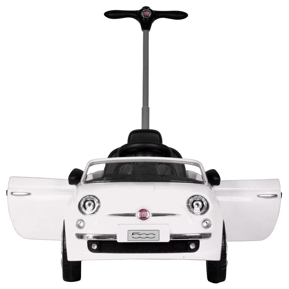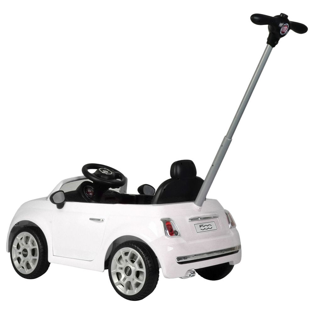 Licensed Fiat 500 SUV! This push car comes with stroller handles so that parents can easily push their kids. The vehicle features an adjustable footrest and adjustable handlebar, and comes with a real horn and music playback. Adjustable footrest for added comfort Comes with a real horn and music playing