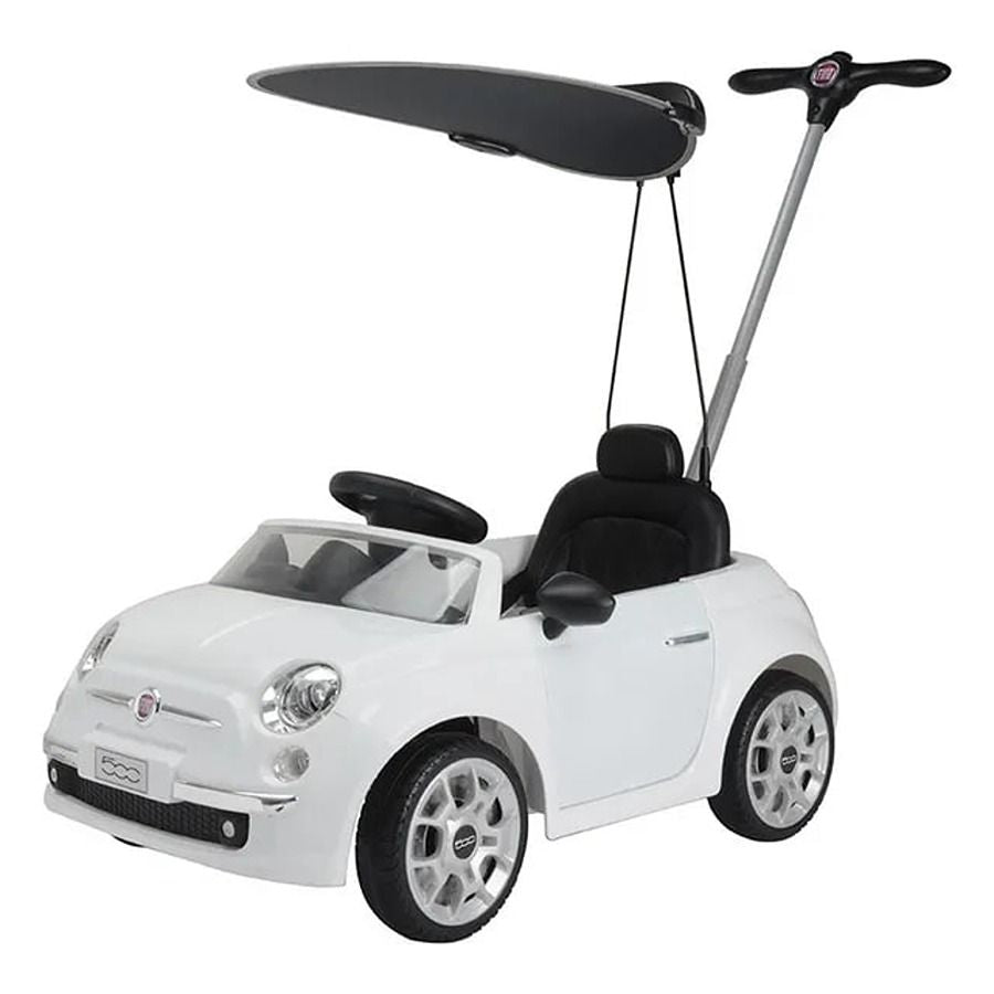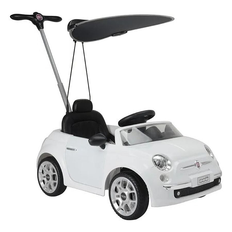The Licensed Fiat 500 SUV! This push car comes stroller handle with Canopy that parents can easily push their kids car and protects from the sun light. The vehicle features an adjustable footrest and adjustable handlebar, and comes with a real horn and music playback. Anti-tipper Boot under seat Push and grab handle. Dummy headlights Horn on steering wheel. Music on steering wheel Seat folds up.The quality material used in its construction makes it durable. This is what makes it worth the buy