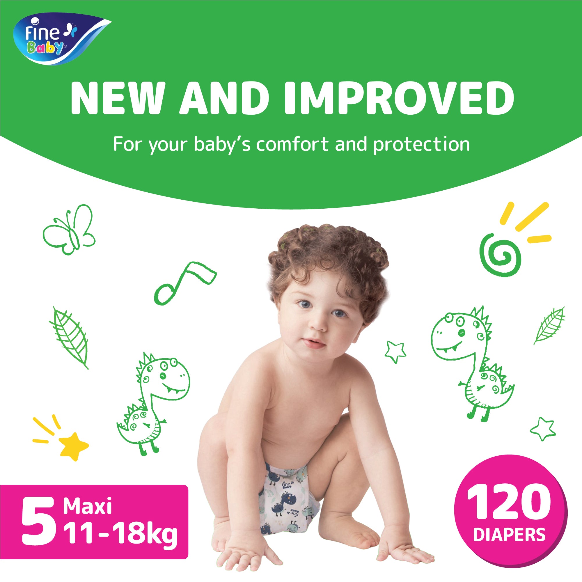 - DOUBLE LOCK TECHNOLOGY AND STRETCHY SIDES: Fine Baby diapers are designed with double lock technology and stretchy sides, offering a secure fit and preventing leaks. The diapers adjust to your baby's movements, giving them a snug experience.