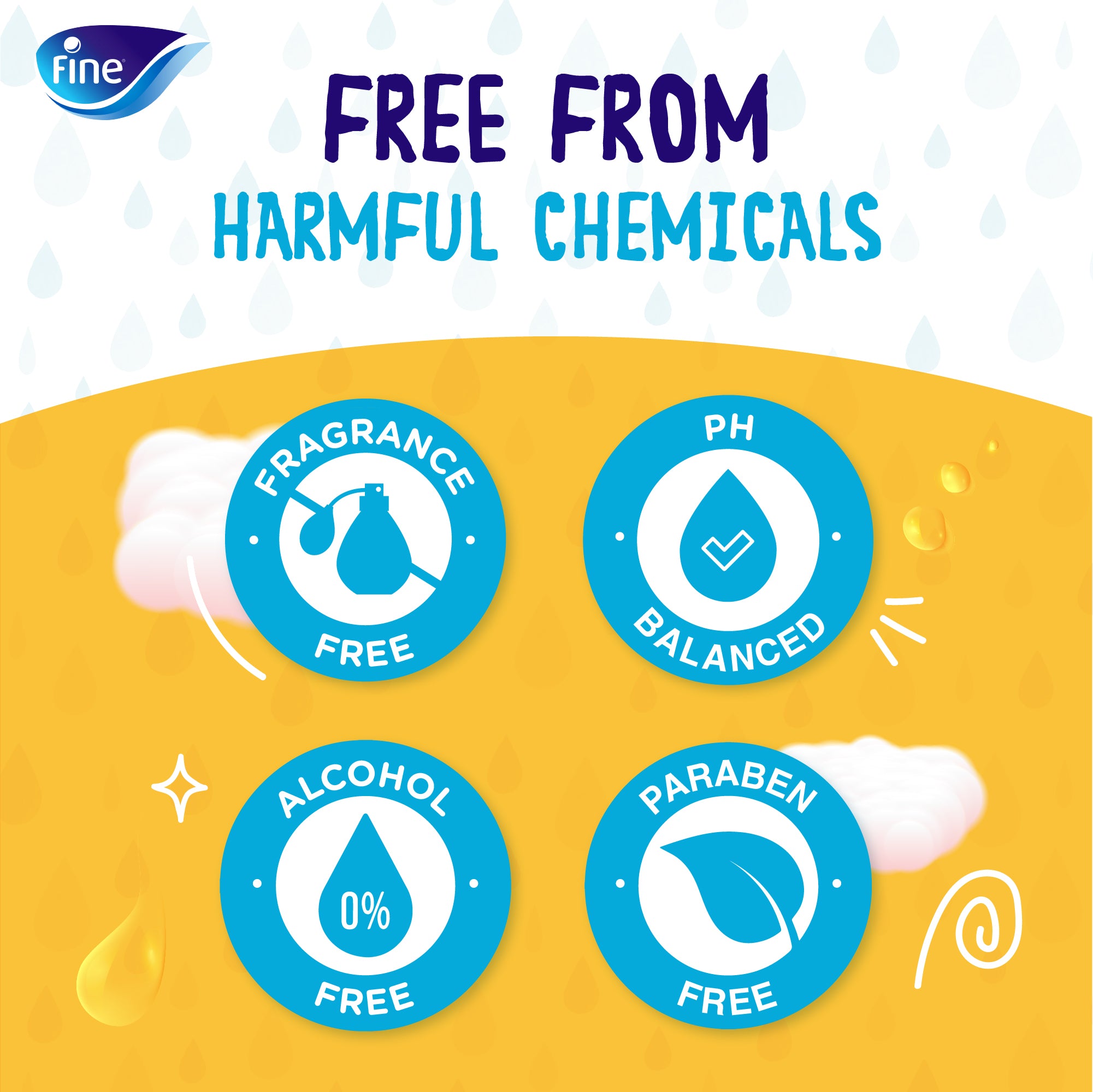 - FREE FROM HARMFUL CHEMICALS: Fine Baby Water Wipes are designed to be free from harmful chemicals. They are fragrance-free, alcohol-free, and paraben-free. Confidently use them on your baby's skin without worrying about any unwanted irritations.