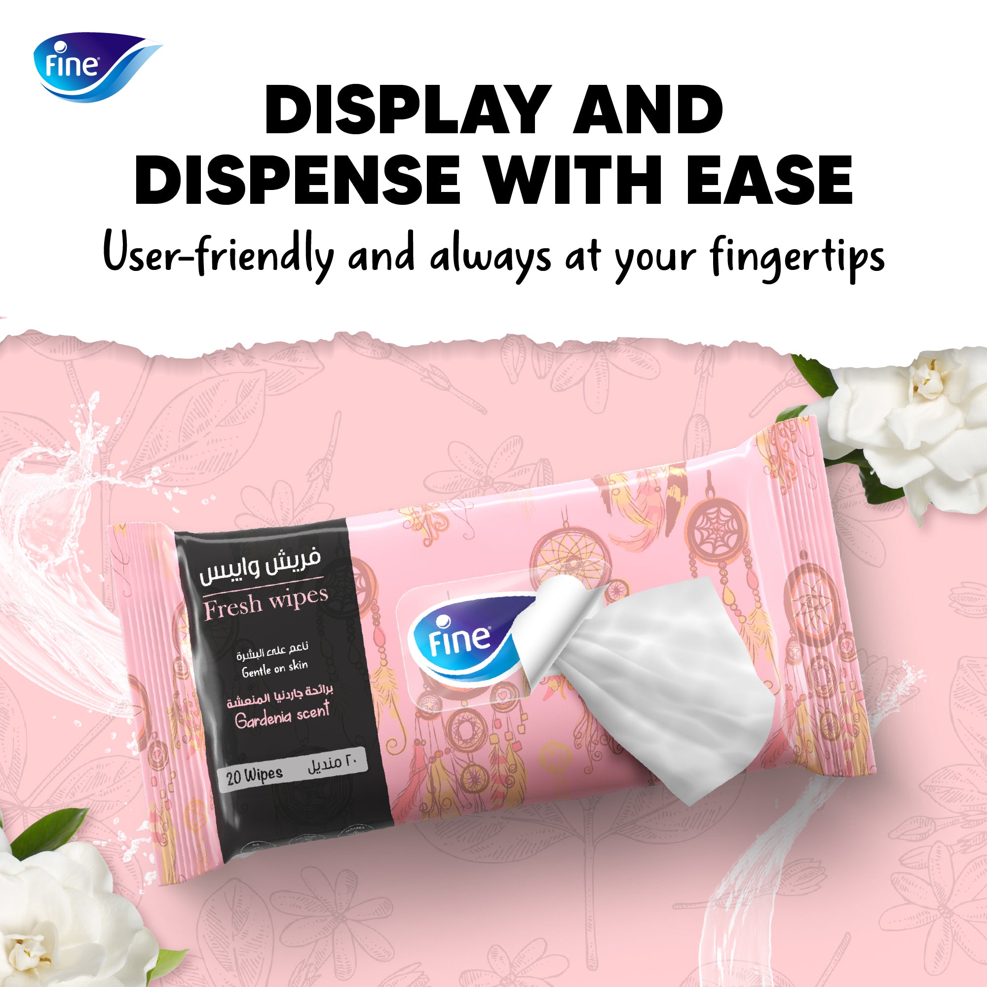 Fine Wipes are more than just cleansing wipes; they provide an instant facial treatment, leaving your skin refreshed and clean with the added bliss of the Gardenia Scent. These wipes are designed to be gentle and alcohol-free, ensuring your skin remains soft and unharmed. Design that adds convenience to your skincare routine, ensuring easy access to your Fine Wipes. The thoughtful design of Fine Wipes Gardenia Scent makes them both aesthetically pleasing and user-friendly, making them a delightful addition to your skincare regimen.