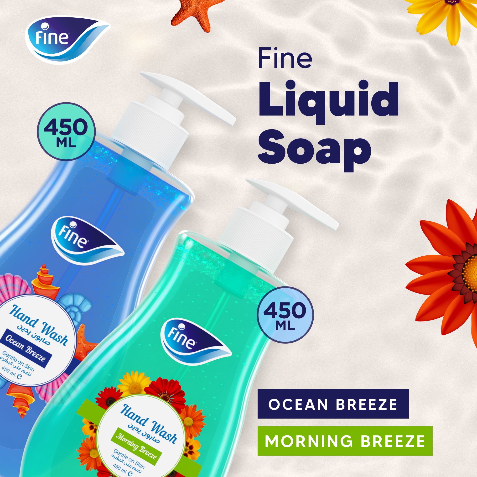 Experience the epitome of hand hygiene with our Fine Hand Wash, offering a refreshing and pampering ritual. The precision-formulated liquid cleanser not only removes dirt but also provides you with a delightful fragrance, leaving hands subtly scented and thoroughly refreshed. Prioritizing health, our hand wash goes beyond cleanliness by ensuring hands are shielded from potential threats while maintaining a refreshed feel. Designed with your hygiene in mind, each use of Fine Hand Wash leaves hands refreshingly clean, promoting a sense of cleanliness and freshness. Elevate your handwashing routine with delightful scents such as Morning Breeze, Ocean Breeze, carefully crafted to add a delightful fragrance to the cleansing experience. For added convenience, Fine Hand Wash is presented in generously sized 450 ml pump cap bottles, facilitating mess-free and hassle-free application for efficient cleanliness.