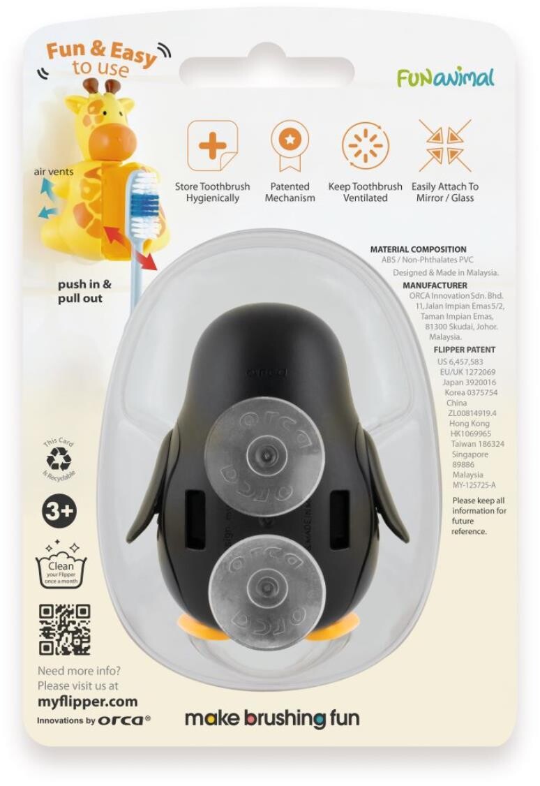 Meet Flipper, your new best friend for oral hygiene! These fun-loving animal buddies are the perfect solution for storing your toothbrush easily and hygienically. Simply attach your favorite Flipper to the mirror and let it keep germs away. Its dust-proof design ensures your toothbrush stays clean and fresh.