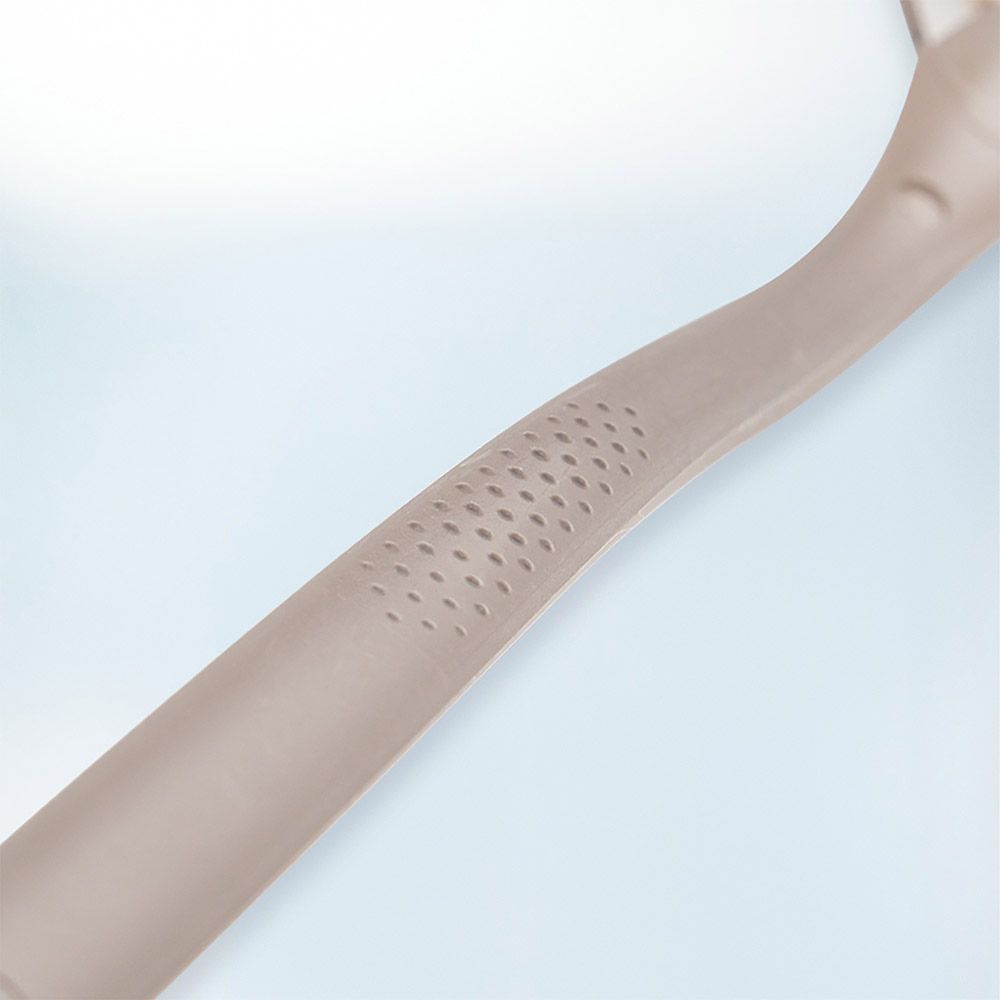 Ergonomically design with non-slip handle. Rounded scrapper shape helps remove bacteria and plaque from tongue with ease