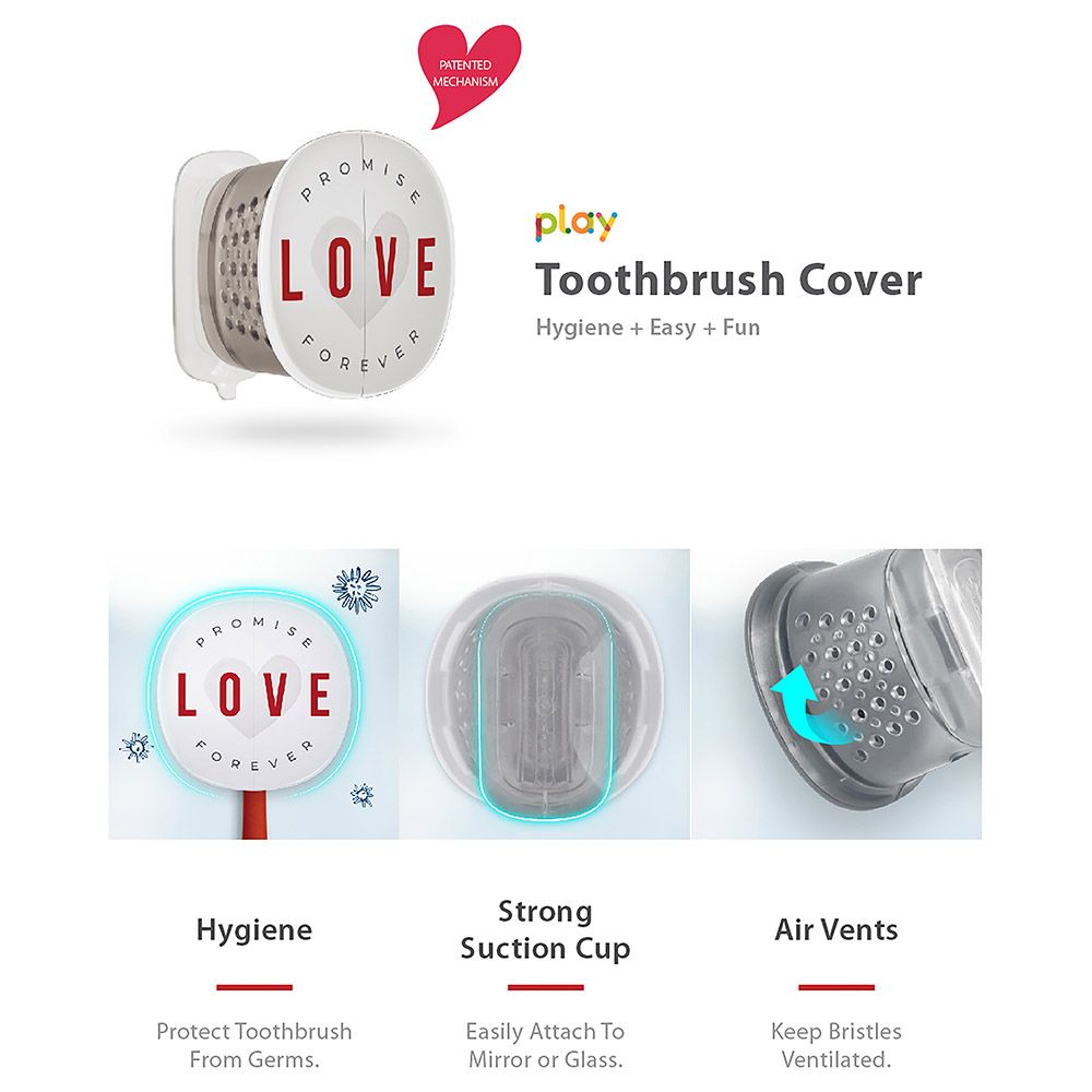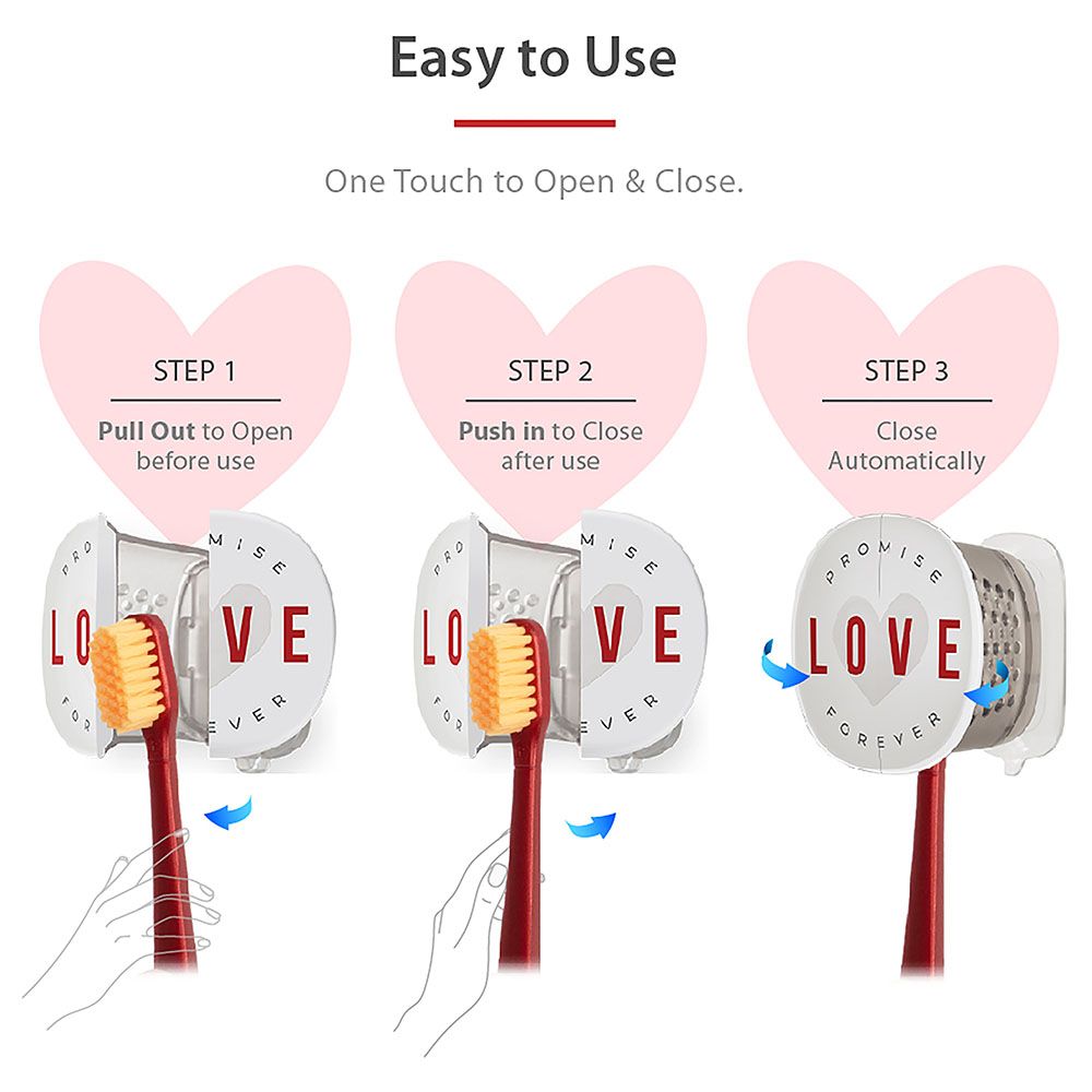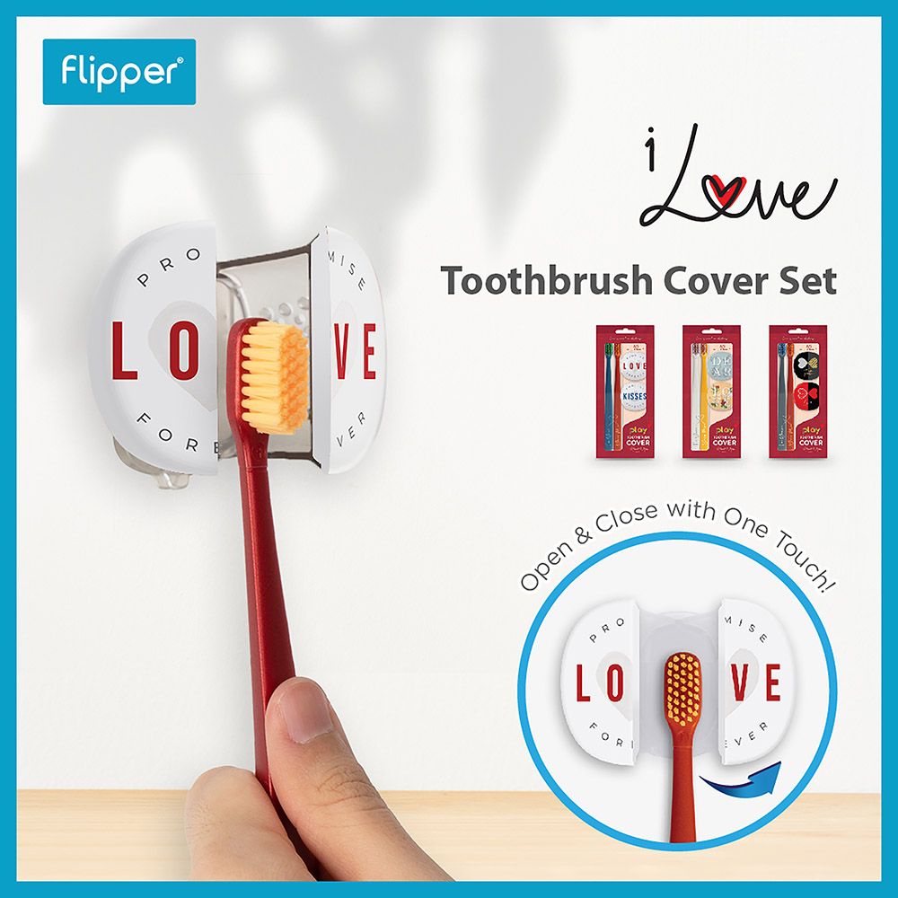 All love needs to be kept warm. Do you still remember the memories when you first were together with someone? Don't let time and life dilute your hard-won relationship. Let Flipper help you witness it together!Enhance your brushing routine with the Flipper Toothbrush Cover & Toothbrush 2in1 Combo Pack. This set Features an easy-to-use toothbrush with a dust-proof cover designed for couples. Effortlessly store and access your toothbrush with a simple push and pull mechanism. The cover protects your toothbrush from germs and dust, ensuring it remains clean and hygienic. Its ventilated design promotes proper air drying of bristles, keeping your toothbrush fresh and free of bacteria. Additionally, the secure suction cup attachment adheres firmly to mirrors, glass, or tiles, keeping your toothbrush holder cap stable. Made in Malaysia, this set combines practical functionality with a charming design for the perfect bathroom accessory.