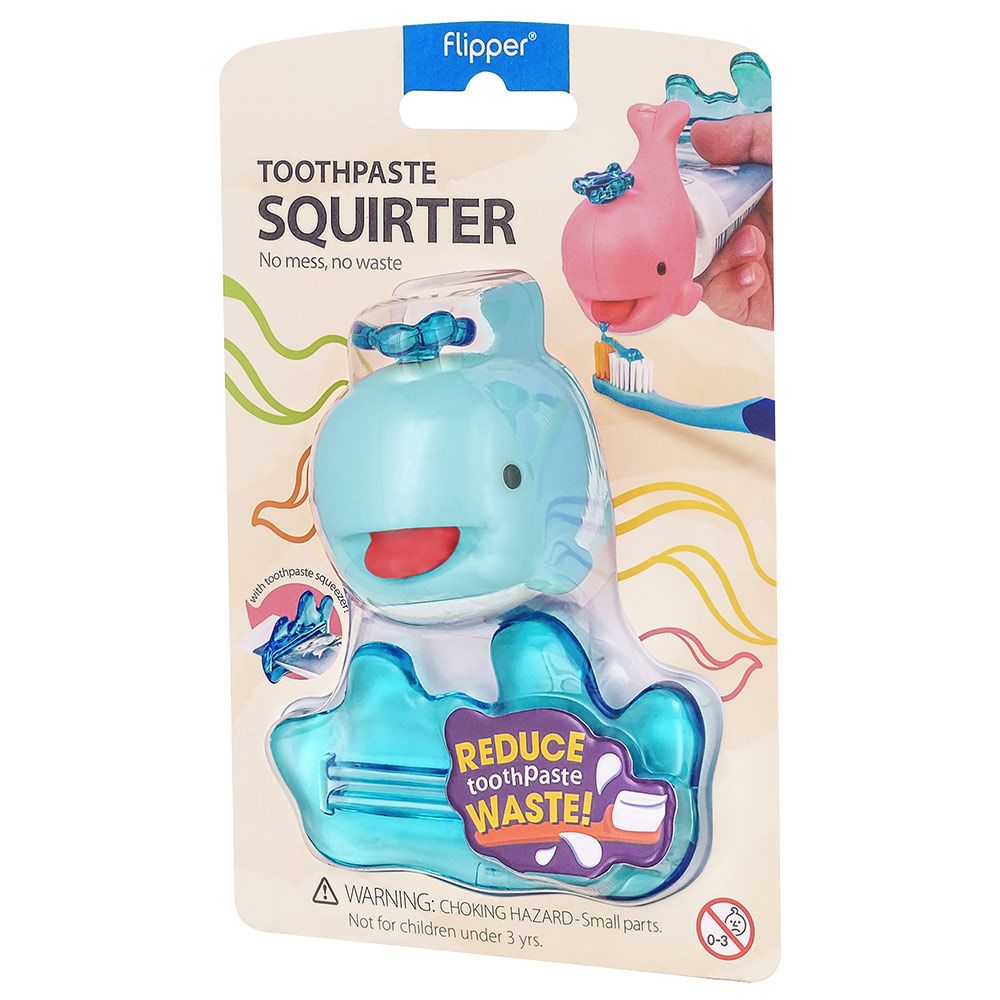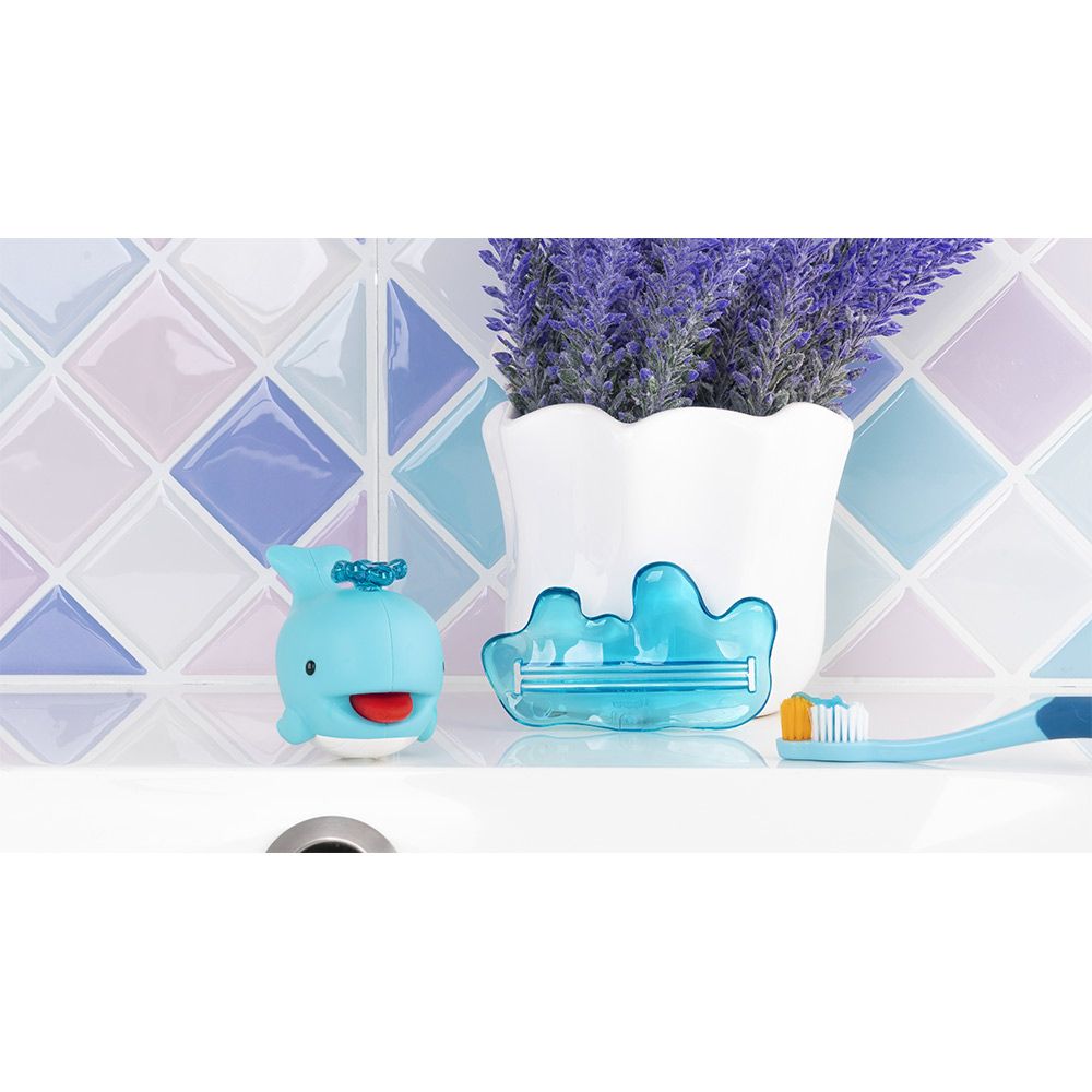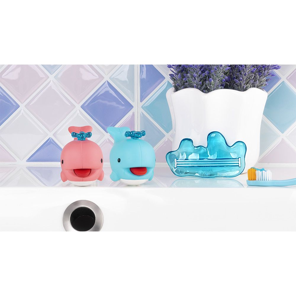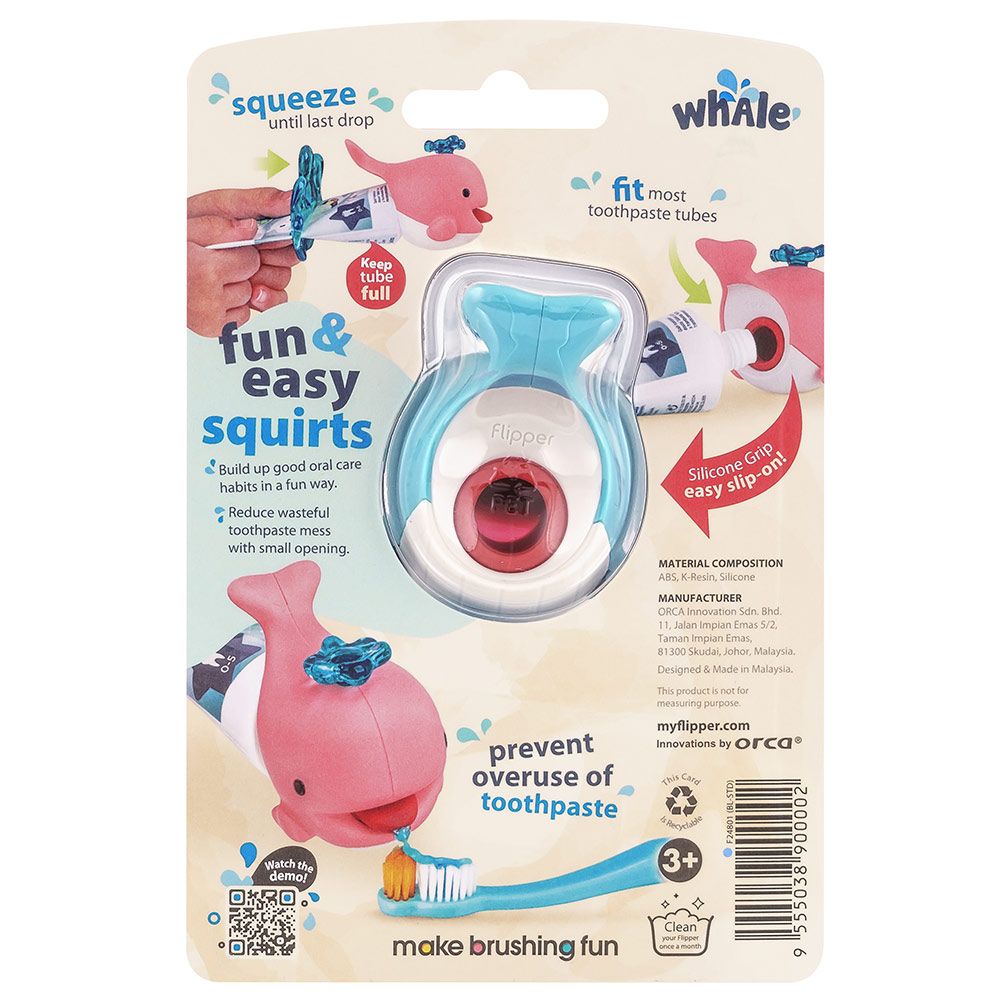Flipper Whale Blue Toothpaste Squirter for Kids – a fun and practical toothpaste dispenser designed to make dental care easy and enjoyable. Its clever design prevents overuse by dispensing a controlled amount of toothpaste, perfect for kids' developing teeth. The squeezer is a help tool that comes with Flipper toothpaste squirter to keep your tube always full at front end. It helps you get the last squeeze of toothpaste out easily and reduce waste with its narrow gap.Made from high-quality, BPA-free materials, it ensures safety and adheres to strict health standards. Compatible with most toothpaste tubes (12mm diameter), it allows for easy squeezing to the last drop, preventing waste and maximizing efficiency. Ideal for kids' toothpaste and mouthwash, this adorable whale dispenser is a must-have for every child's bathroom.The little whale buddies create a perfect match with splash-shaped squeezer to make daily brushing fun, regardless you're a young child or young at heart! Just remove the toothpaste cap and insert the toothpaste tube into the silicone slot at the back of the squirter.