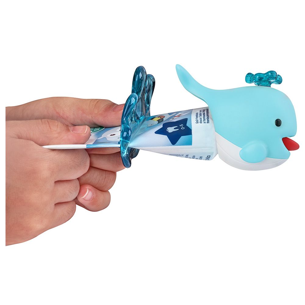 - Clever Design to Prevent Overuse: Our Flipper Whale Blue Toothpaste Squirter is designed with a small opening to dispense a controlled amount of toothpaste, preventing overuse. This feature is especially beneficial for children during their permanent teeth development.