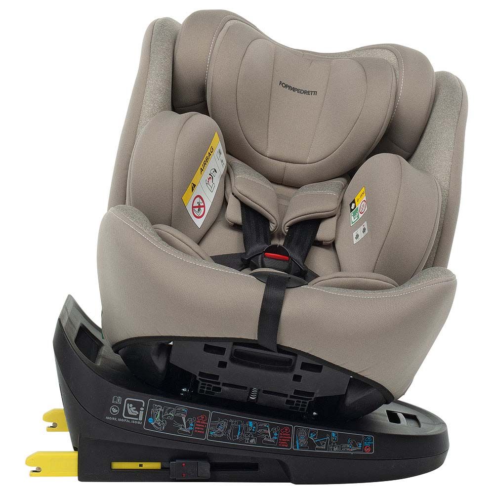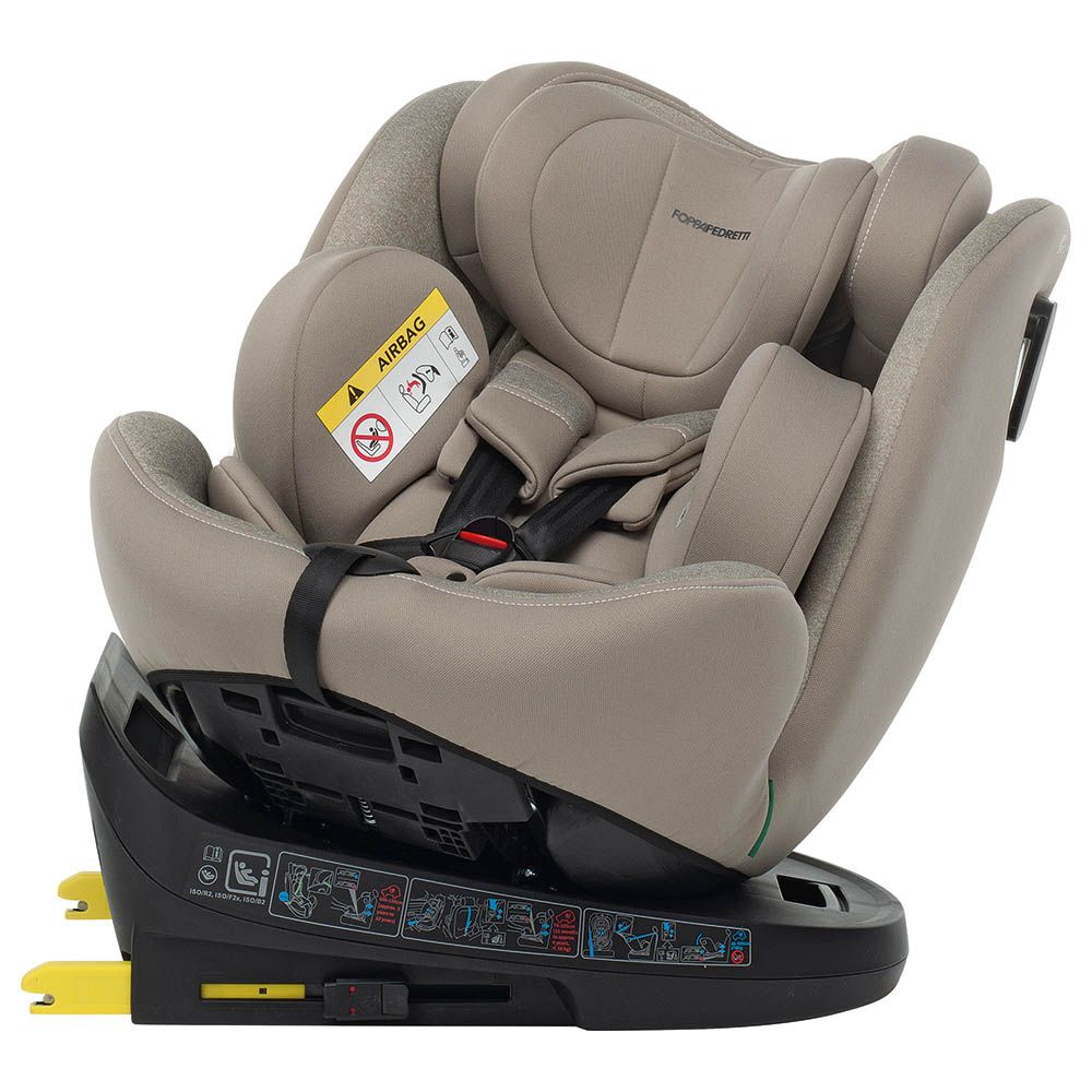 Circle i-Size car seat by Foppapedretti, with rotating and reclining seat, follows the child’s growth from birth up to approximately 12 years : it is homologated for children from 40 to 150 cm height.
