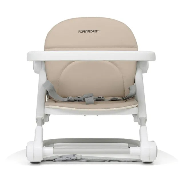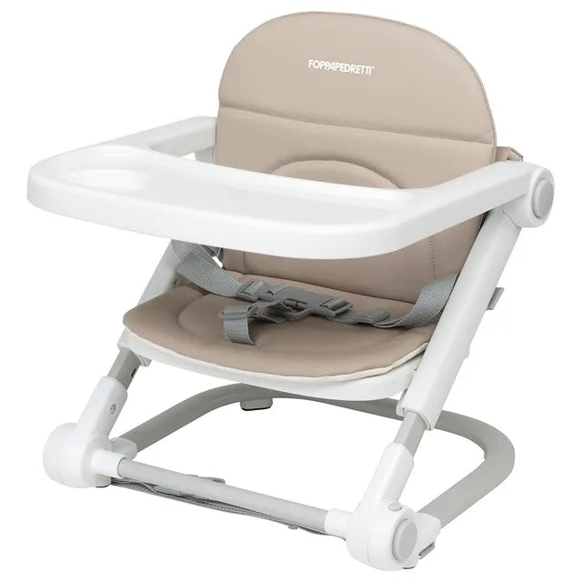 The folding booster chair Lift by Foppapedretti is a safe chair, that can be used with or without tray, for children able to sit unaided up to 3 years approx. (max 15 kg).