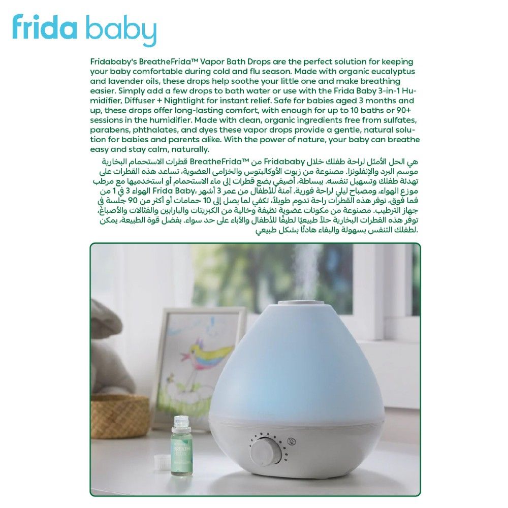 Fridababy's breathefrida vapor bath drops deliver cold and flu season comfort with organic eucalyptus and Lavender Oils that help baby keep calm and breath easily. Simply drop in to warm bath water or place A few drops into a diffuser.