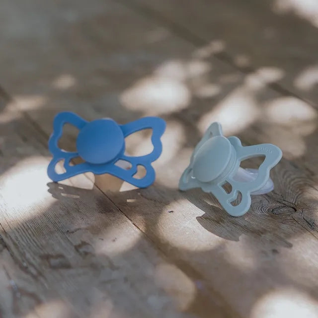 Frigg Butterfly is an anatomical pacifier with a nipple that reflects the shape of the mouth. The pacifier is designed to put less pressure on the palate, gums and jaws and it is the gentlest type of pacifier. This reduces the risk of crooked teeth and a crooked bite. The orthodontic design is perfect for supporting the proper development of baby's teeth, jaw, and palate.
